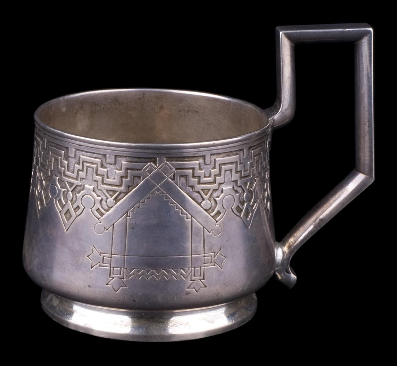 Россия, Москва, 1884г. Серебро, литье, гравировка, монтировка. Клейма: "84", "Георгий Победоносец", пробирного мастера "В.П." над годом клеймения "1884", мастера "Я.Б". Высота - 5,8см, диаметр - 6,8см.