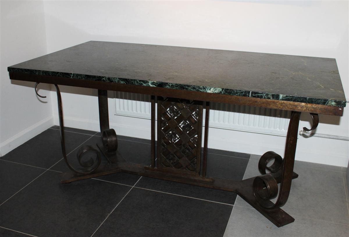 Франция, нач. XX в. Эдгар Брандт. Металл, художественная ковка, мрамор, монтировка. Внизу на ножке стола подпись «E.Brandt»73х160х85см.