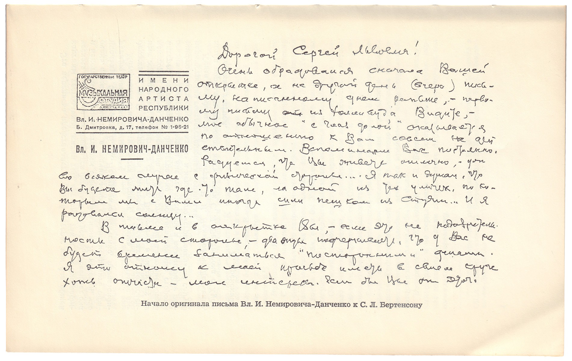 Константин Аренский (Аренсбургер-Иванов Константин Евгеньевич; 1905-1985) — известный ученый-химик, закончил Тартуский университет, фармаколог, литератор и театральный деятель под псевдонимом К. Аренский. Издание содержит публикации переписки 1928–1933 годов между историком театра, голливудским сценаристом Сергеем Львовичем Бертенсоном и известными деятелями театра — Фокиным, Немировичем-Данченко, Книппер, Бокшанской и другими.