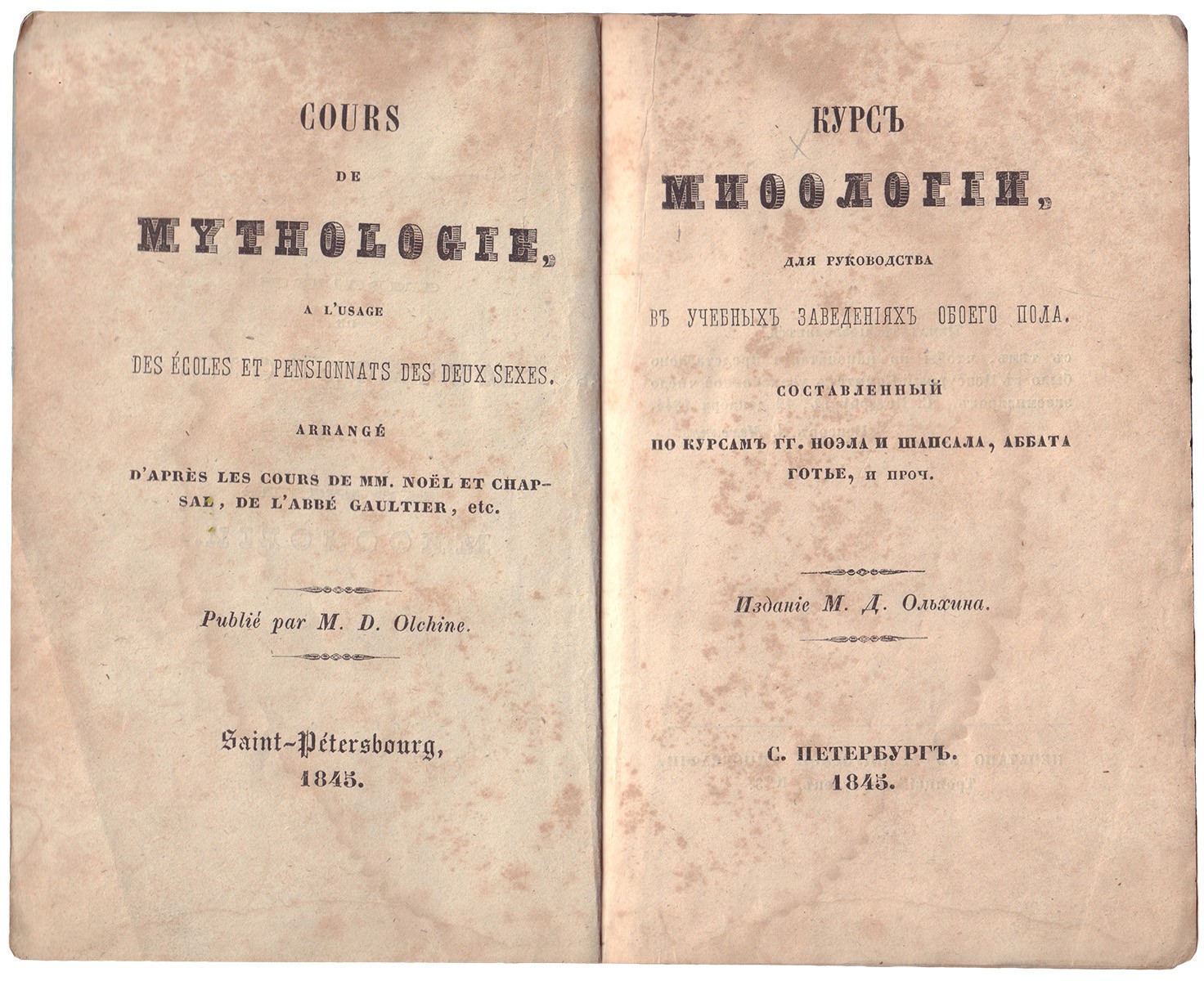 Приплет (фрагмент издания): [Новая мифология для юношества : По вопросам и ответам... ] Nouvelle mythologie de la jeunesse, par demandes et par reponses, Reduite a ce qui peut etre enseigne aux jeunes gens des deux sexes. Divisee en quatre parties : les divinites du premier ordre, les divinites du second ordre. Les heros, les divinites allegoriques... T.1. - 2-е изд. - Париж: Tardieu-Denesle, 1820. - [4], IV с., 3 л. ил.