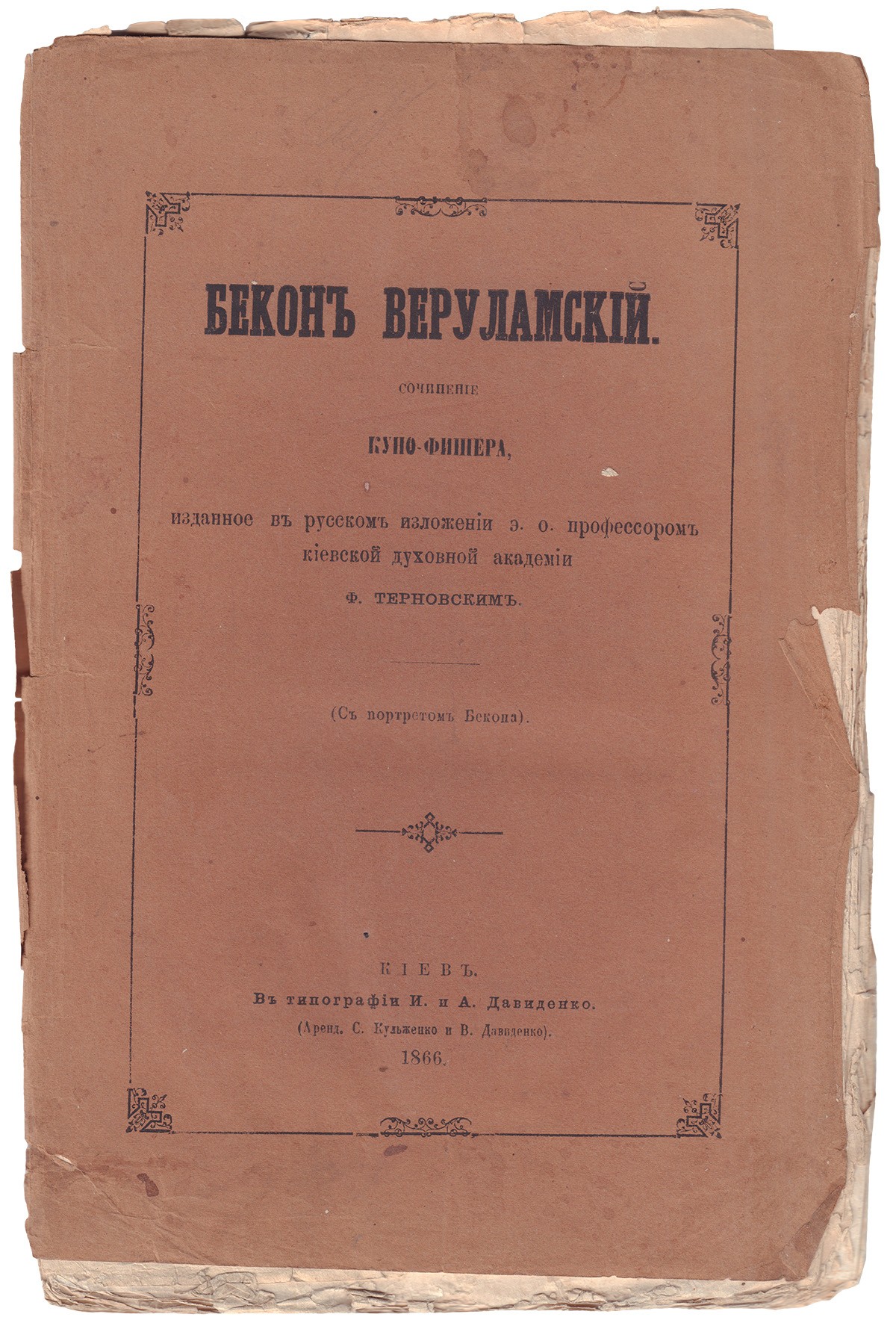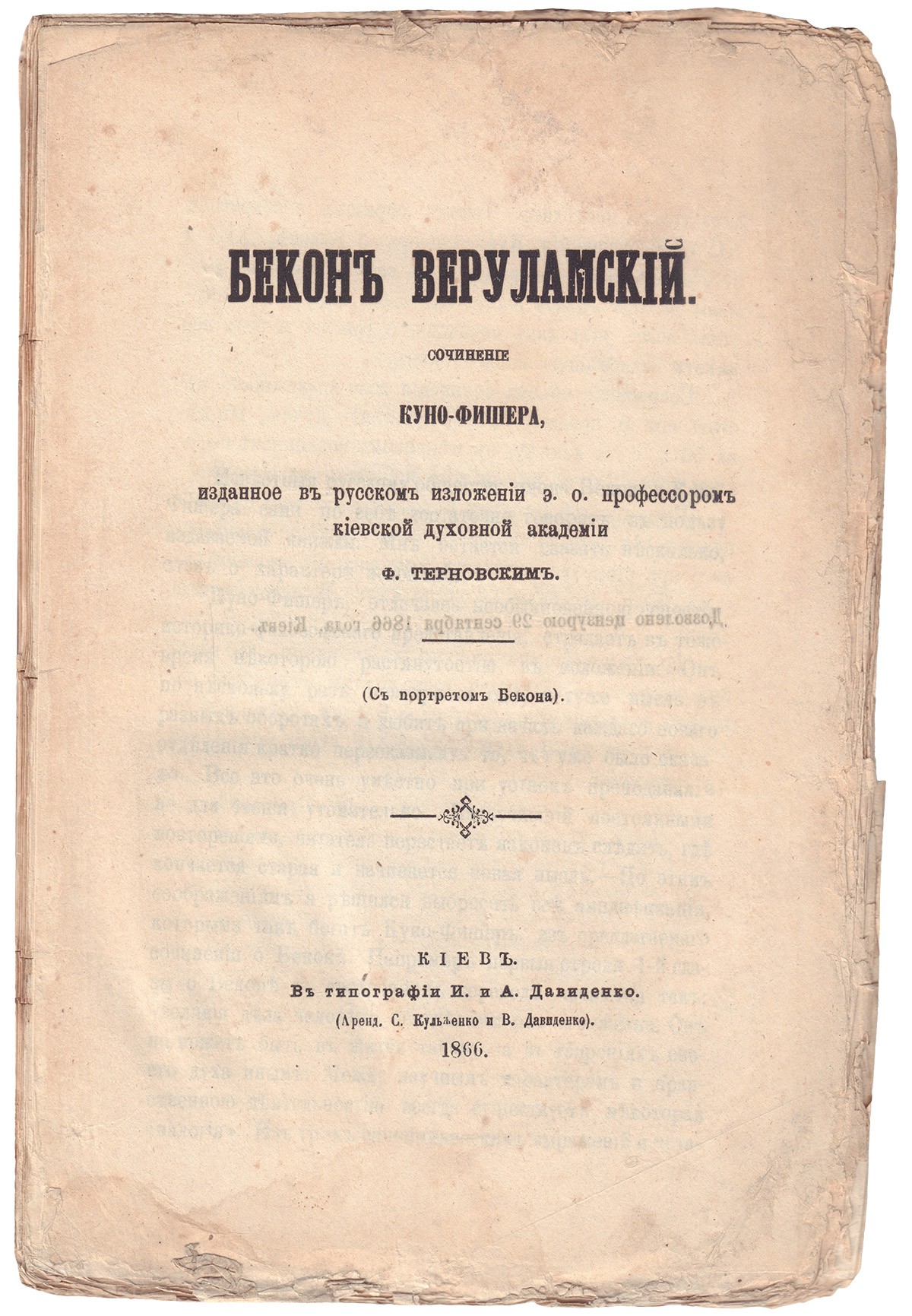 Фишер Куно (1824-1907) — немецкий историк философии XIX века.Филипп Алексеевич Терновский(1838-1884) — профессор Киевской духовной академии и доцент по кафедре церковной истории в Университете Св. Владимира, доктор русской истории. Фрэнсис Бэкон (1561-1626) — английский философ, юрист, государственный деятель и писатель; один из основателей философии и прикладной науки Нового времени.