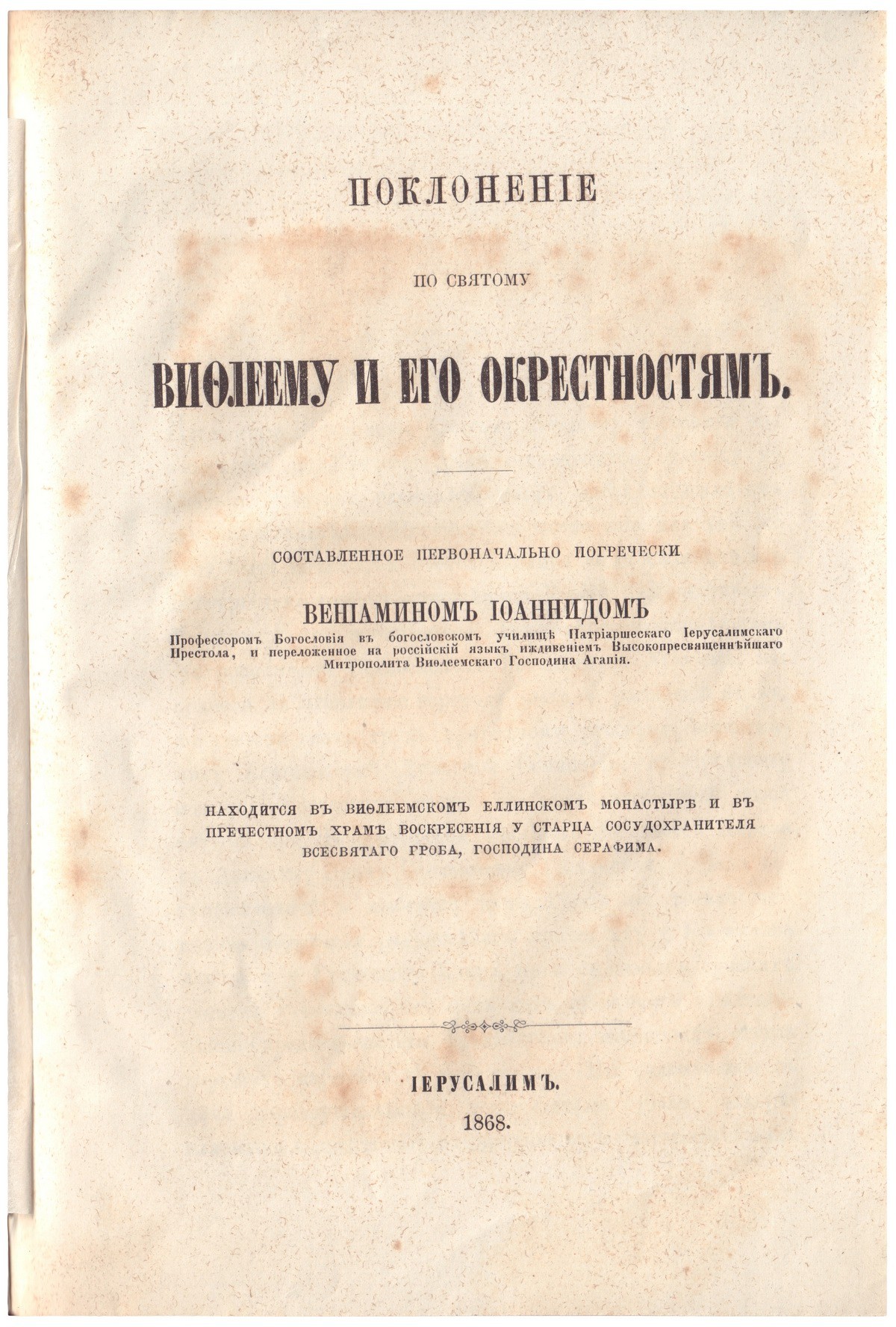 Экземлпяр произведения позднего издания (1882) был представлен в личной библиотеке Василия Николаевича Хитрово, которая стала основой одного из лучших книжных собраний по палестиноведению (ИППО).