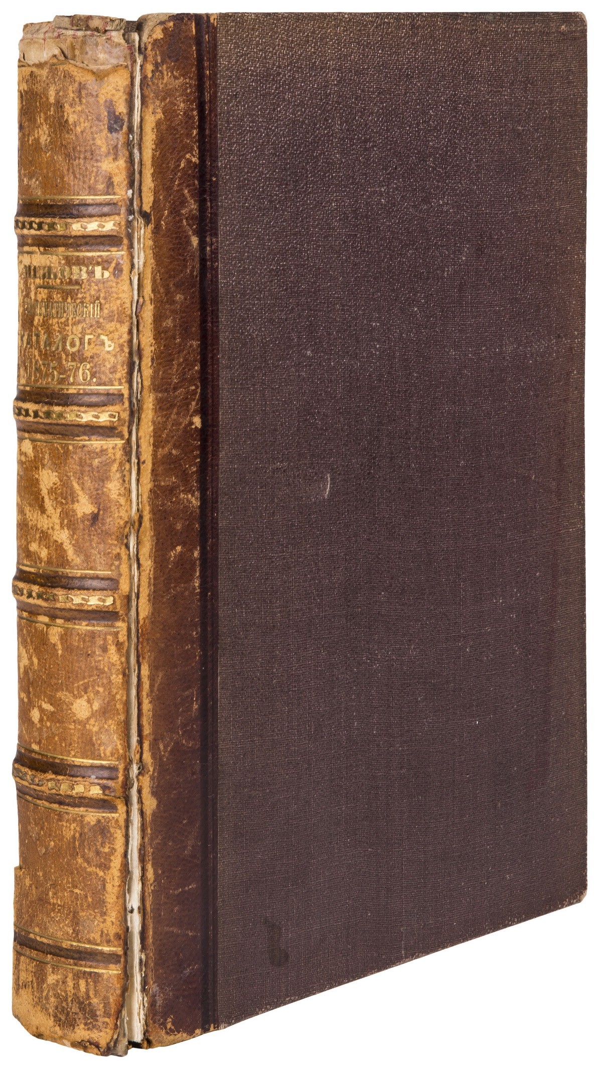 В полукожаном переплете эпохи с золотым тиснением по корешку с бинтами. Задн. стор. издат. обл. сохранена в переплете.