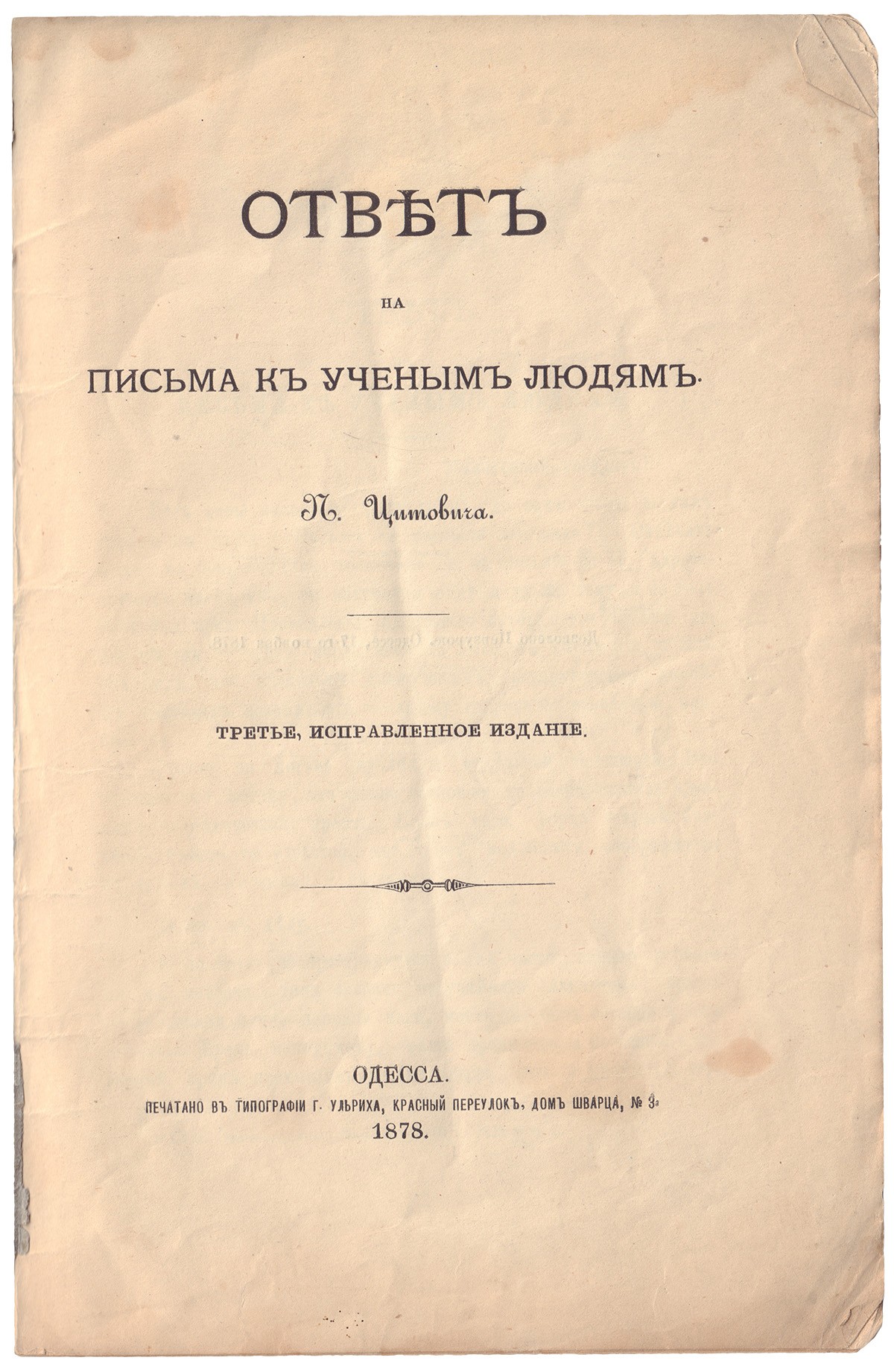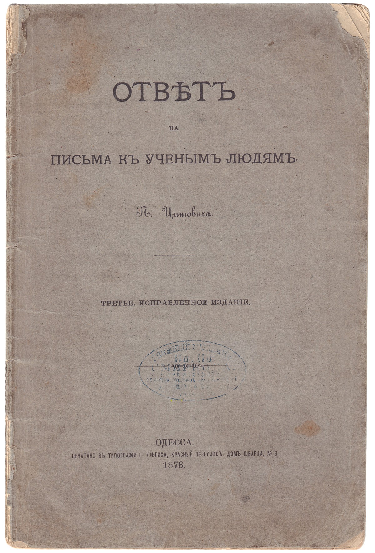 Надрывы и утраты фрагм. обл. Книготорг. шт. на пер. ст. обл.