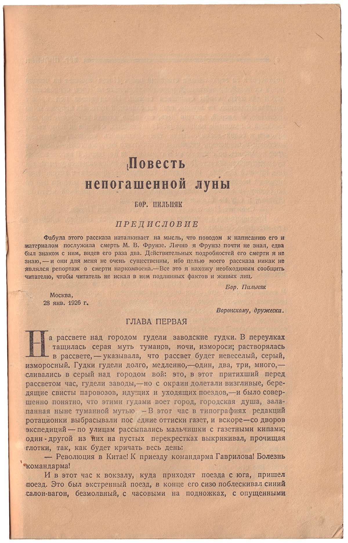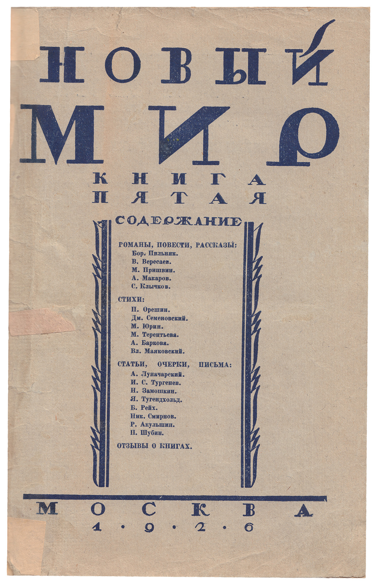 Владельческий полукожаный переплет, стилизованный под переплеты эпохи. Пер. ст. издательской обложки сохранена в переплете. На с. 111 опубликовано «К Сергею Есенину» В. Маяковского.