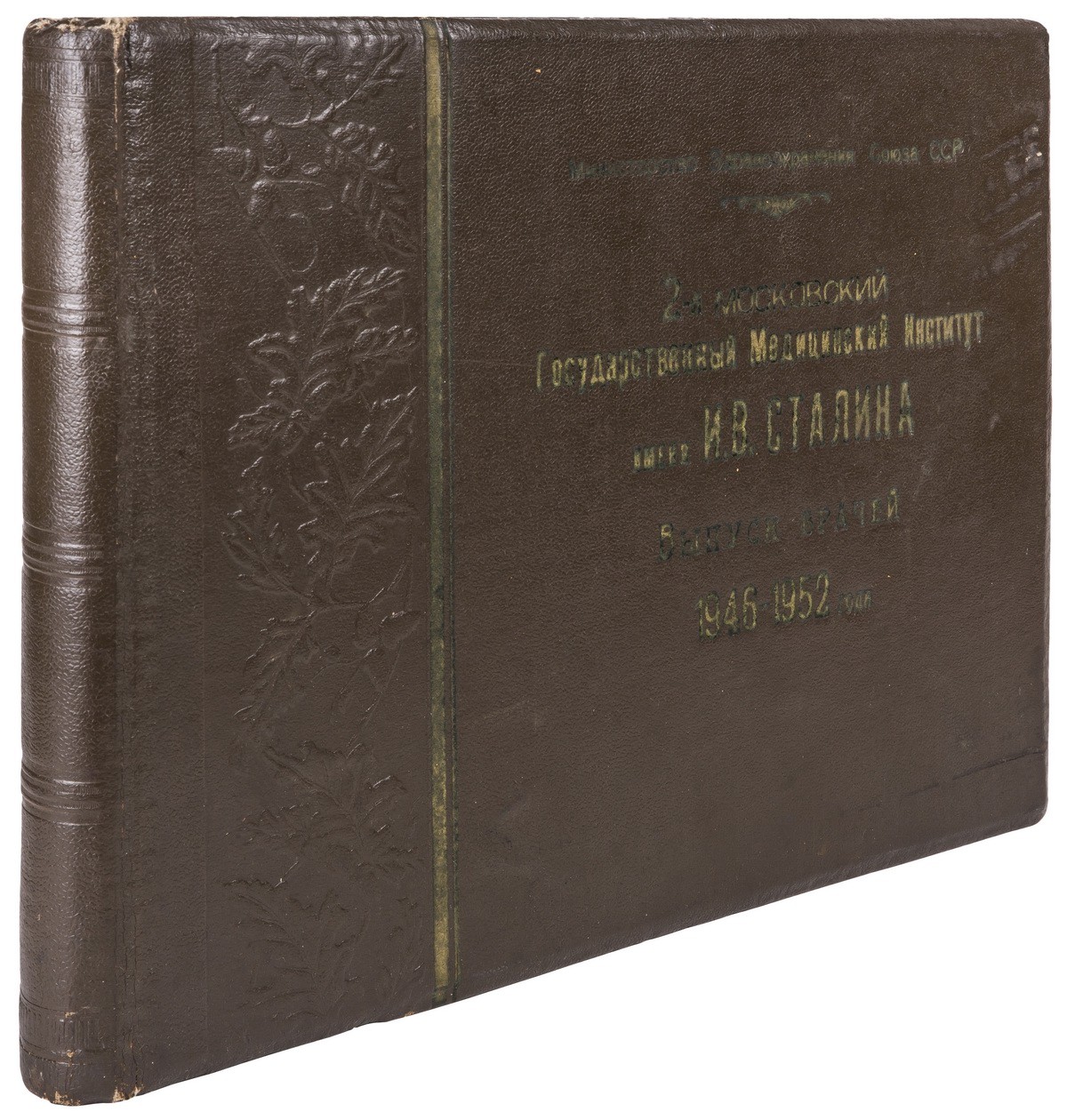 В коленкоровом издательском переплете с блинтовым узором в виде дубовых листьев и золочением по пер. крышке.