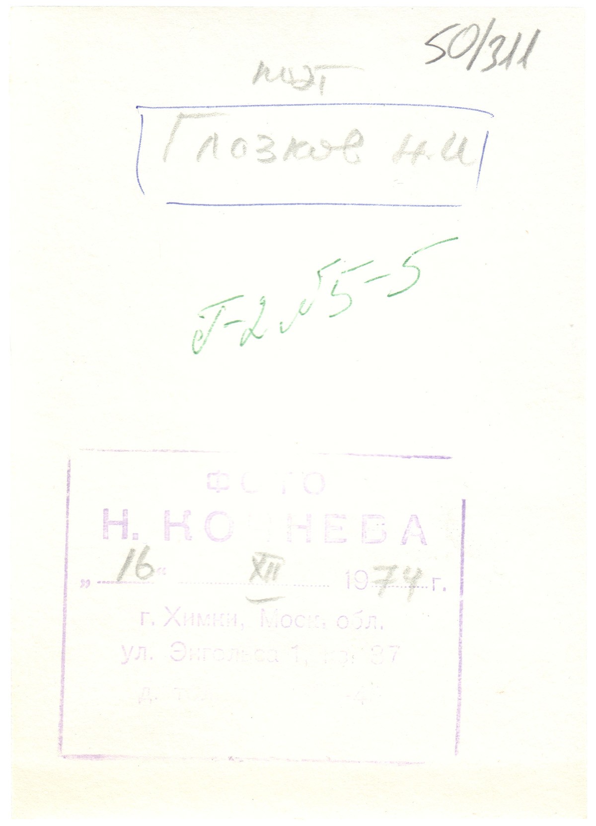 Николай Иванович Глазков (1919–1979) — поэт, переводчик, киноактер. В 1939 г. вместе с Юлианом Долгиным основал неофутуристическое литературное течение «небывализм» и выпустил два машинописных альманаха. Николай Георгиевич Кочнев (1919-2013) фотограф. Автор крупнейшей в СССР фотогалереи советских писателей.
