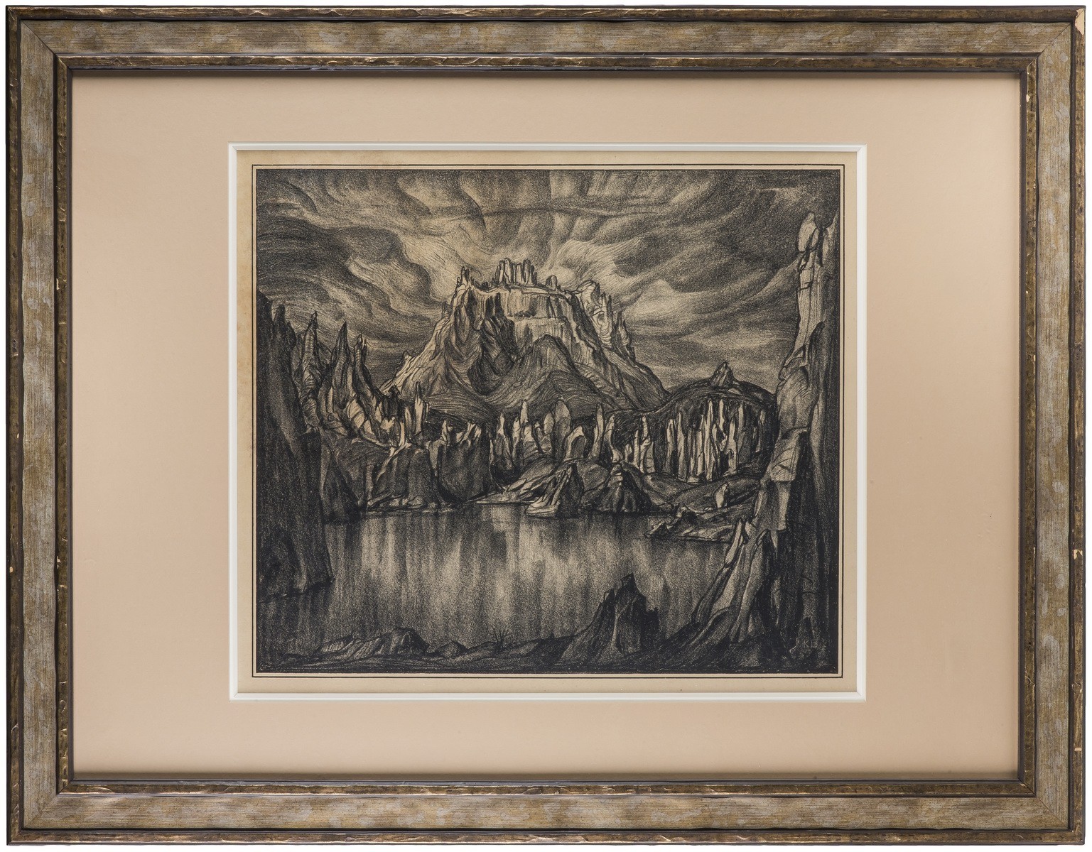 В раме, под стеклом.