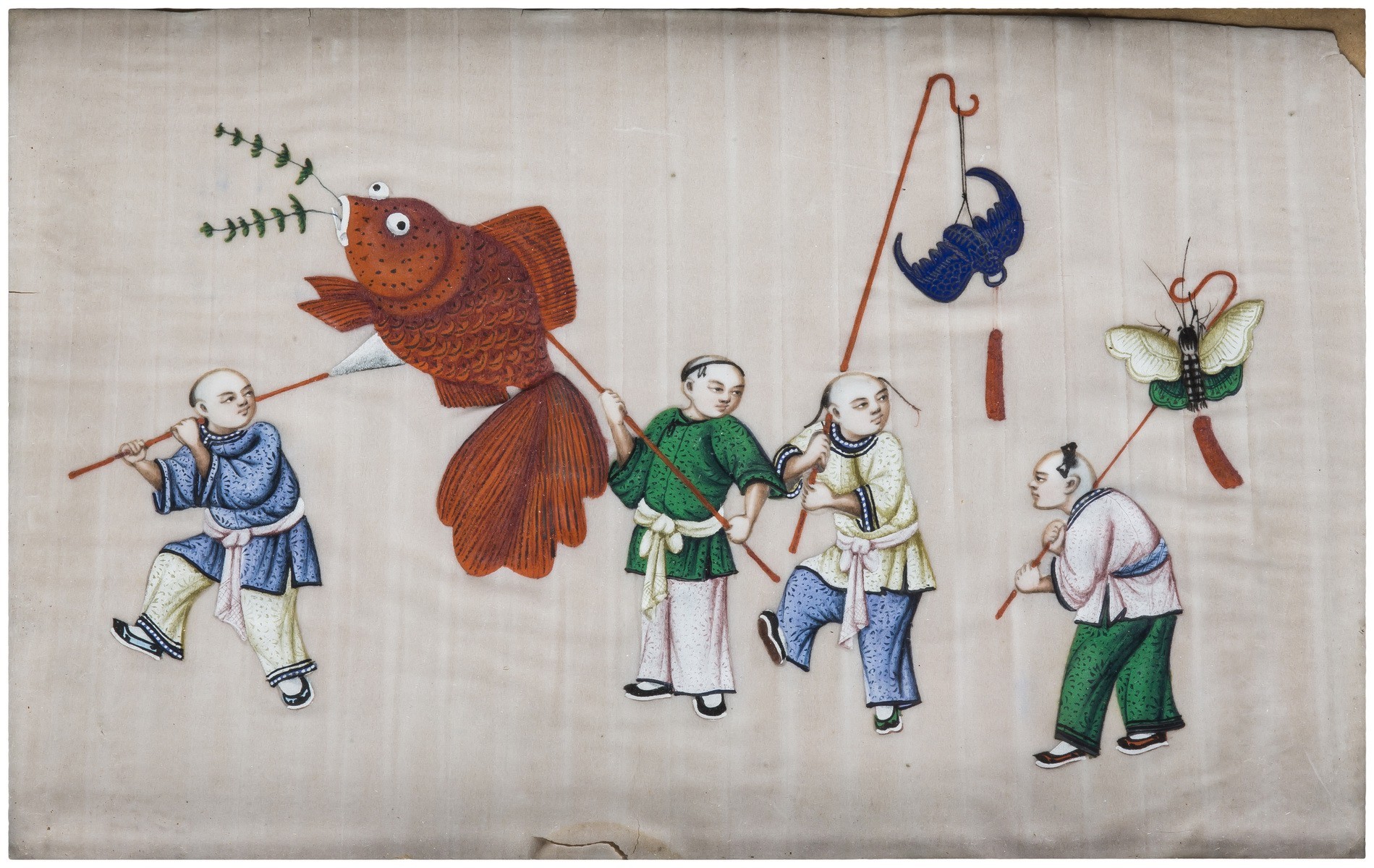 н.х. Процессия в Китае. - Китай, XIX век. Рисовая бумага, тушь, акварель. - 20х33 см.