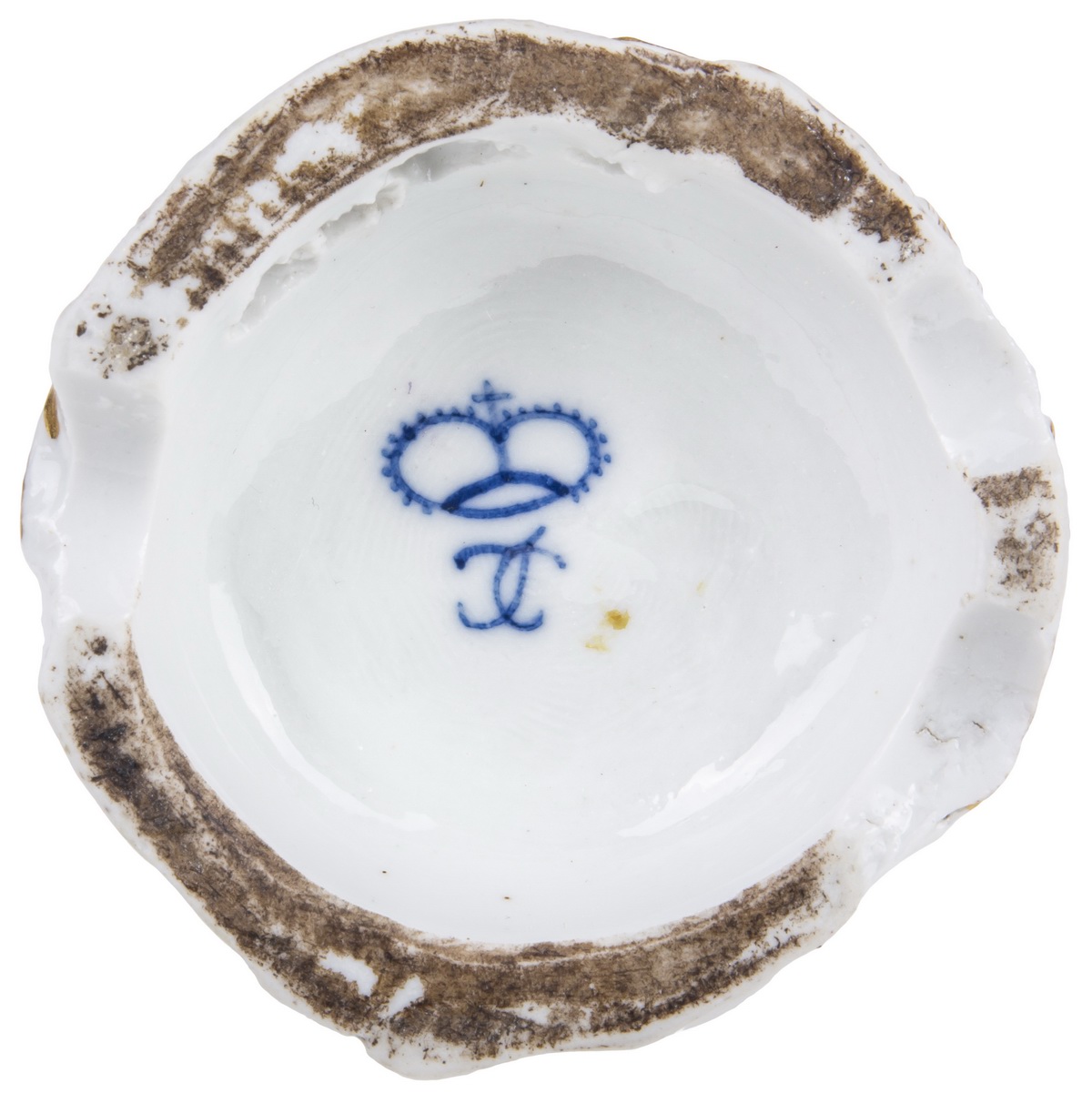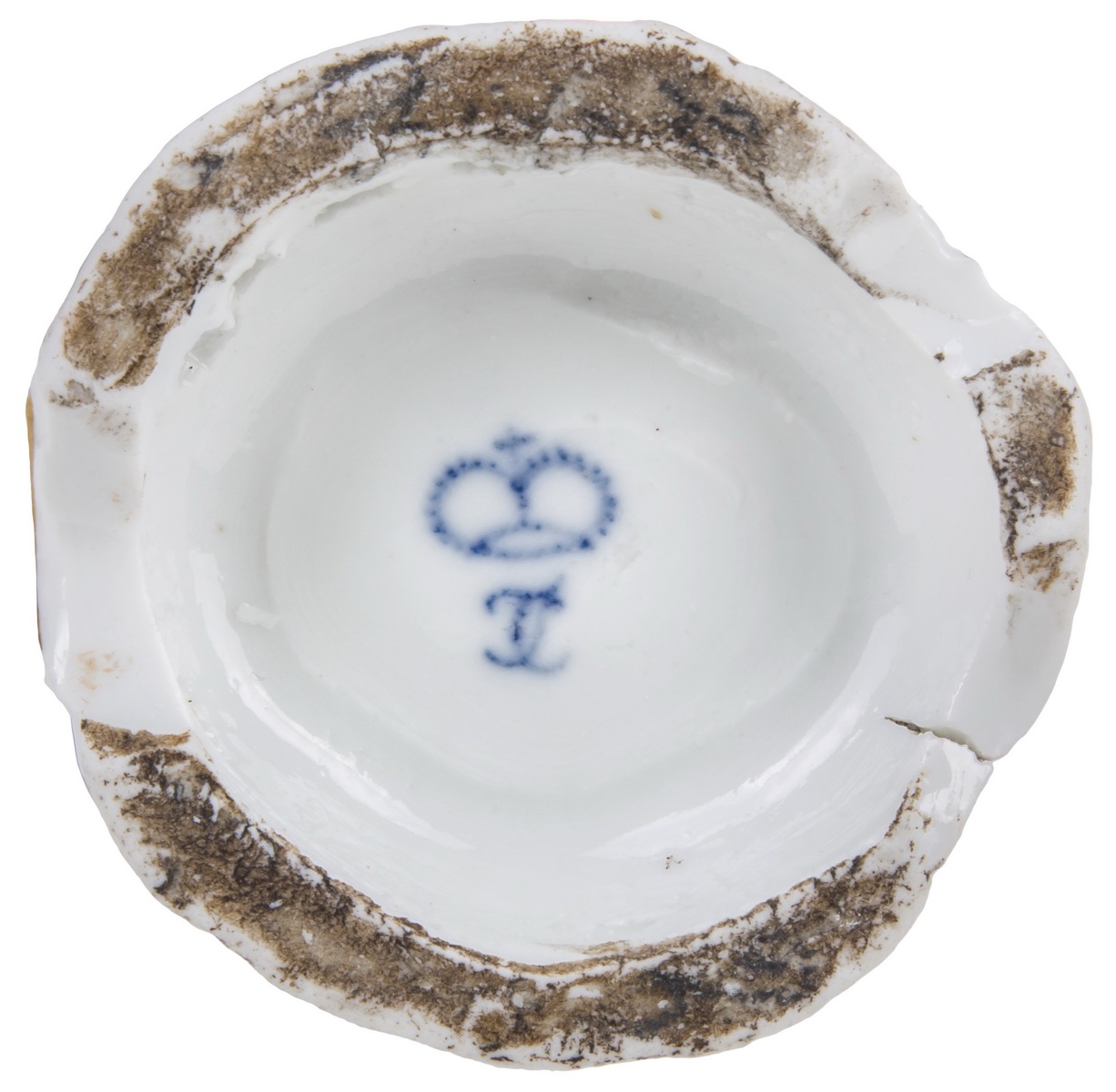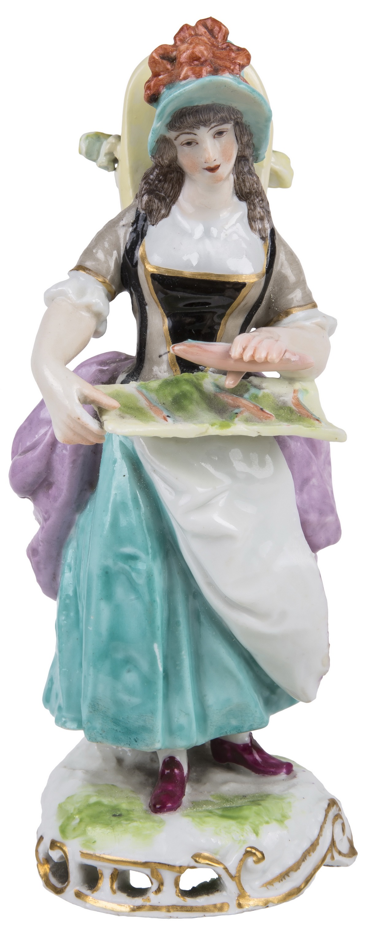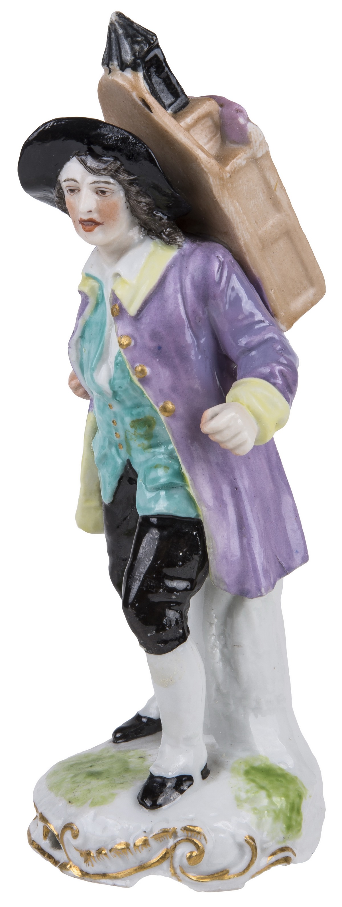Фарфор, лепка, надглазурная полихромная роспись, золочение. На дне обеих фигур подглазурно марка синим: корона с литерами "СТ".