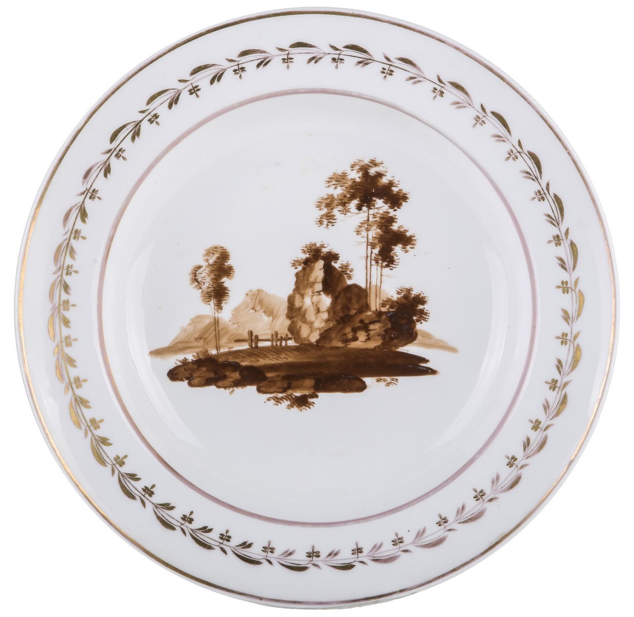 Фарфор; гризайльная роспись, золочение. Марки: синим подглазурно «АП».