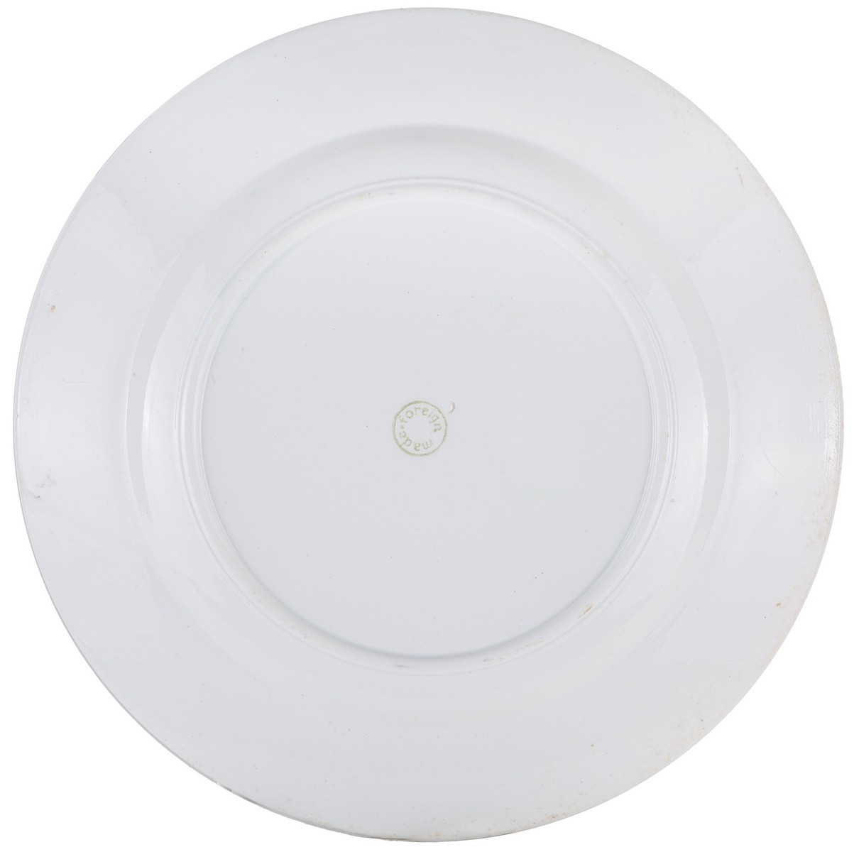 Фаянс, деколь, глазурь. На основании клеймо зеленым "made foreign" и буква "c" в тесте.