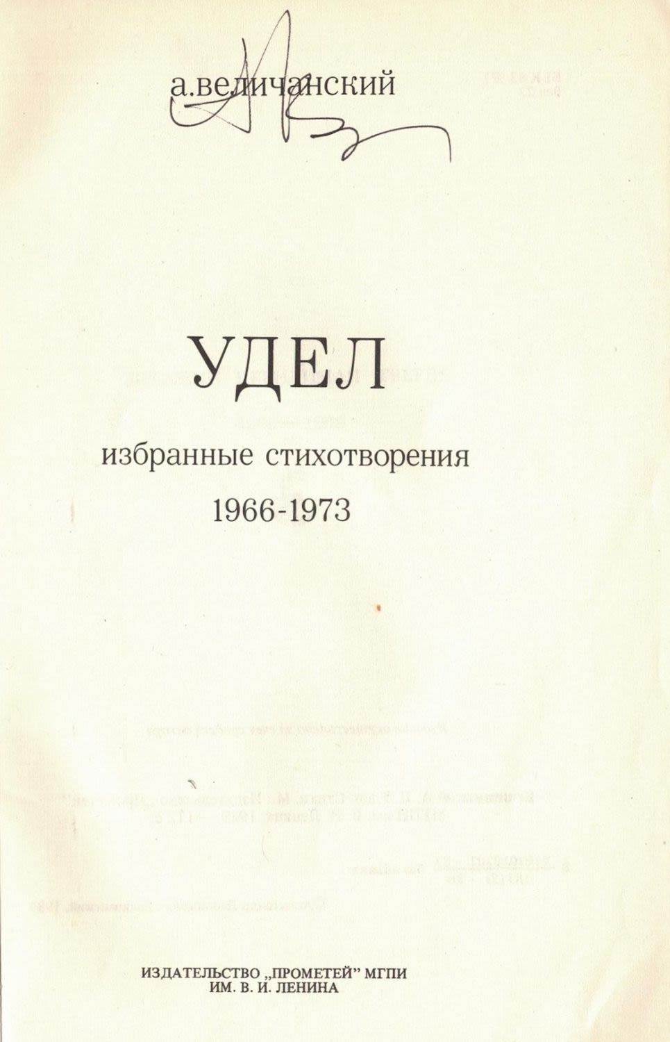 Александр Леонидович Величанский (1940-1990) — русский поэт и переводчик. Первая официальная публикация была в 1969 г. в № 12 журнала «Новый мир» — последнем номере, вышедшем под редакцией Александра Твардовского. Затем, до конца 1980-х публиковался исключительно в самиздате. Стихотворения, выпущенные в издательстве «Прометей» В 1989-1990 годах были напечатаны на средства автора.