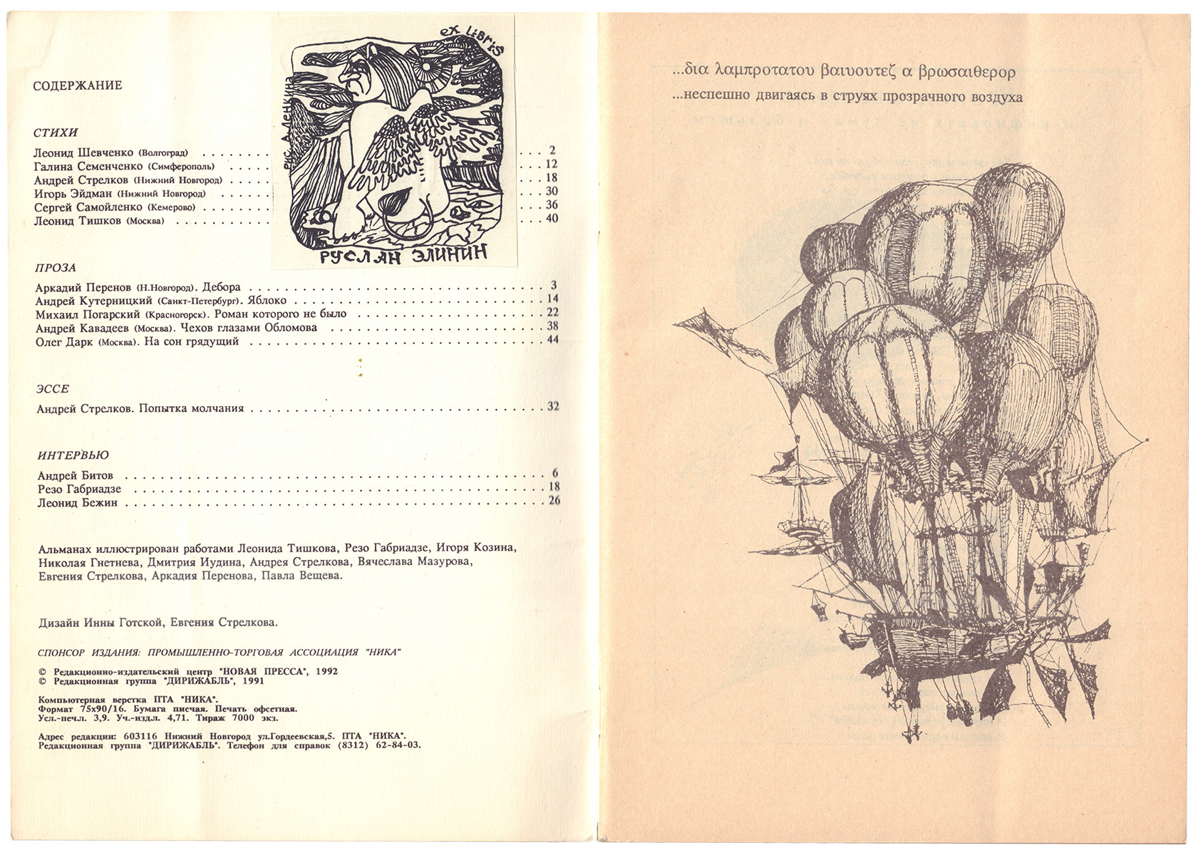 “Дирижабль" : журнал объединения молодых литераторов и художников-графиков из Нижнего Новгорода, Москвы и Санкт-Петербурга. Выпуск первый