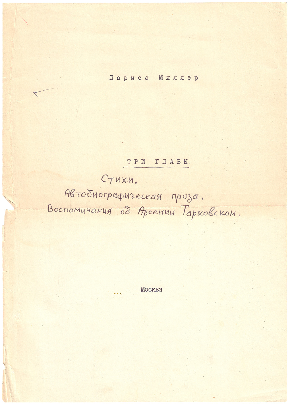 Экз. с авторской правкой. Верстка книги поэтессы, писательницы и эссеиста Марины Емельяновны Миллер (р. 1940). Включает в себя стихотворения, а также мемуарные зарисовки в прозе.
