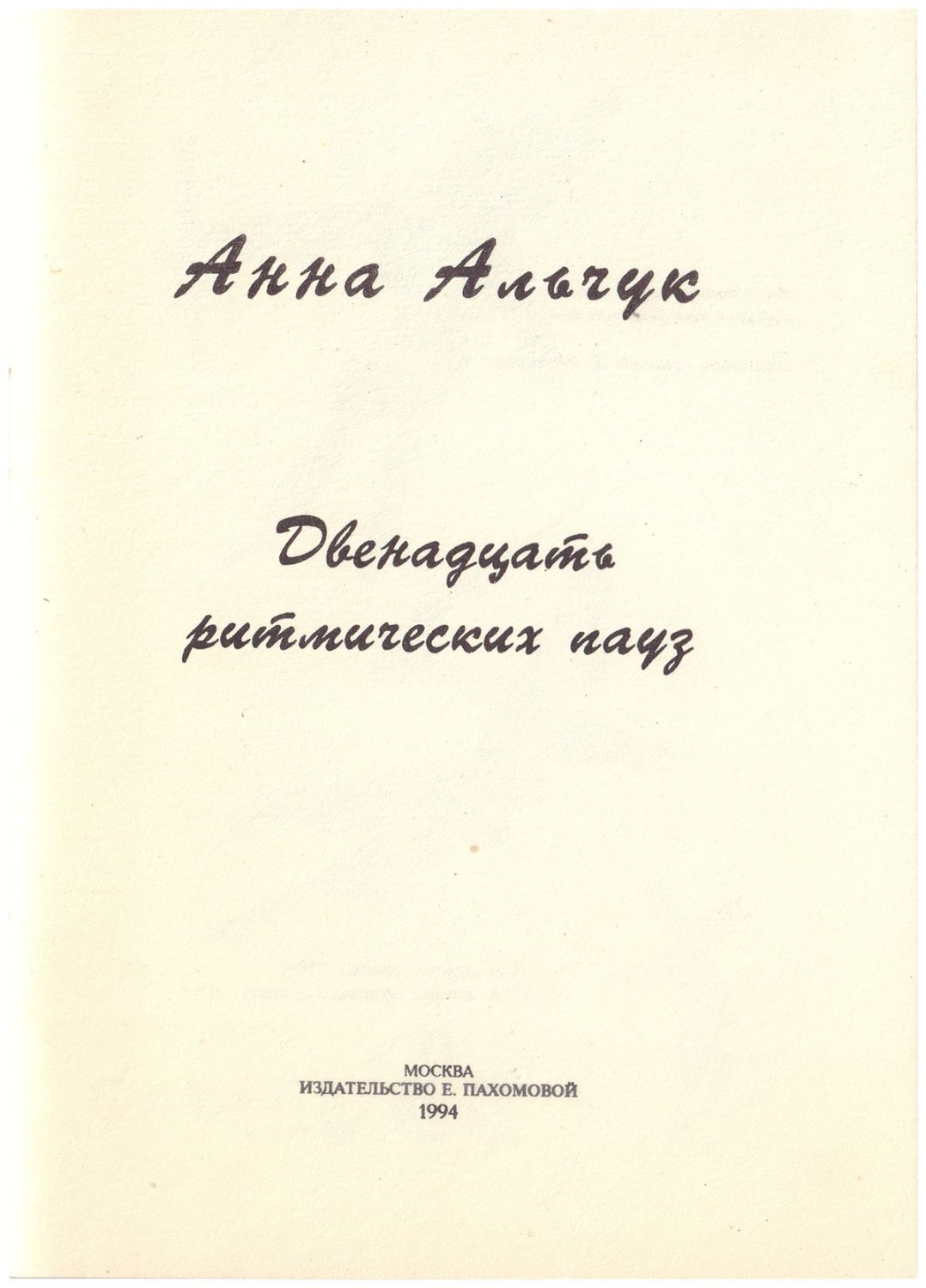 Анна Александровна Альчук (Михальчук; 1955-2008) — поэтесса, художница, фотограф, мастер видеоинсталляции, Член Союза литераторов России, русского ПЕН-клуба, Международной академии зауми (2002). С 1987 по 1988 год издавала самиздатские журналы «Парадигма» (совместно с Глебом Цвелем) и «МДП». В конце 1980-х примкнула к группе московских художников и поэтов — концептуалистов и принимала участие в их первых выставках. Стихи и визуальные тексты Анны Альчук публиковались в журналах «Черновик», «Новое литературное обозрение». Выставки её художественных работ были организованы как в России, так и в Великобритании, Германии, Венгрии и Швеции.