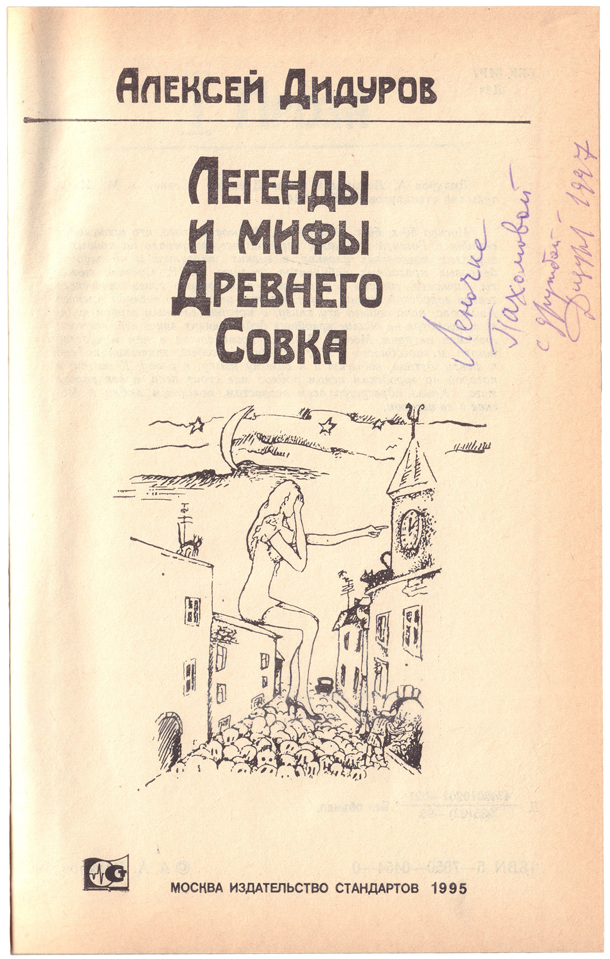 Дидуров, А.А. [автограф]. Легенды и мифы Древнего Совка / Алексей Дидуров; [худож. К. Дидурова]. - М.: Изд-во стандартов, 1995. — 223, [1] с.: ил.; 22,2х15,2 см.