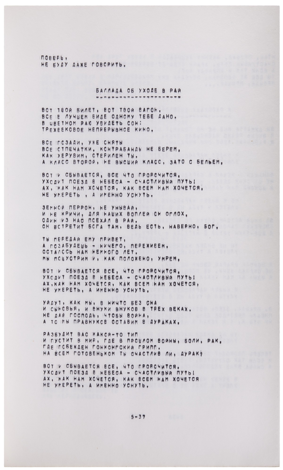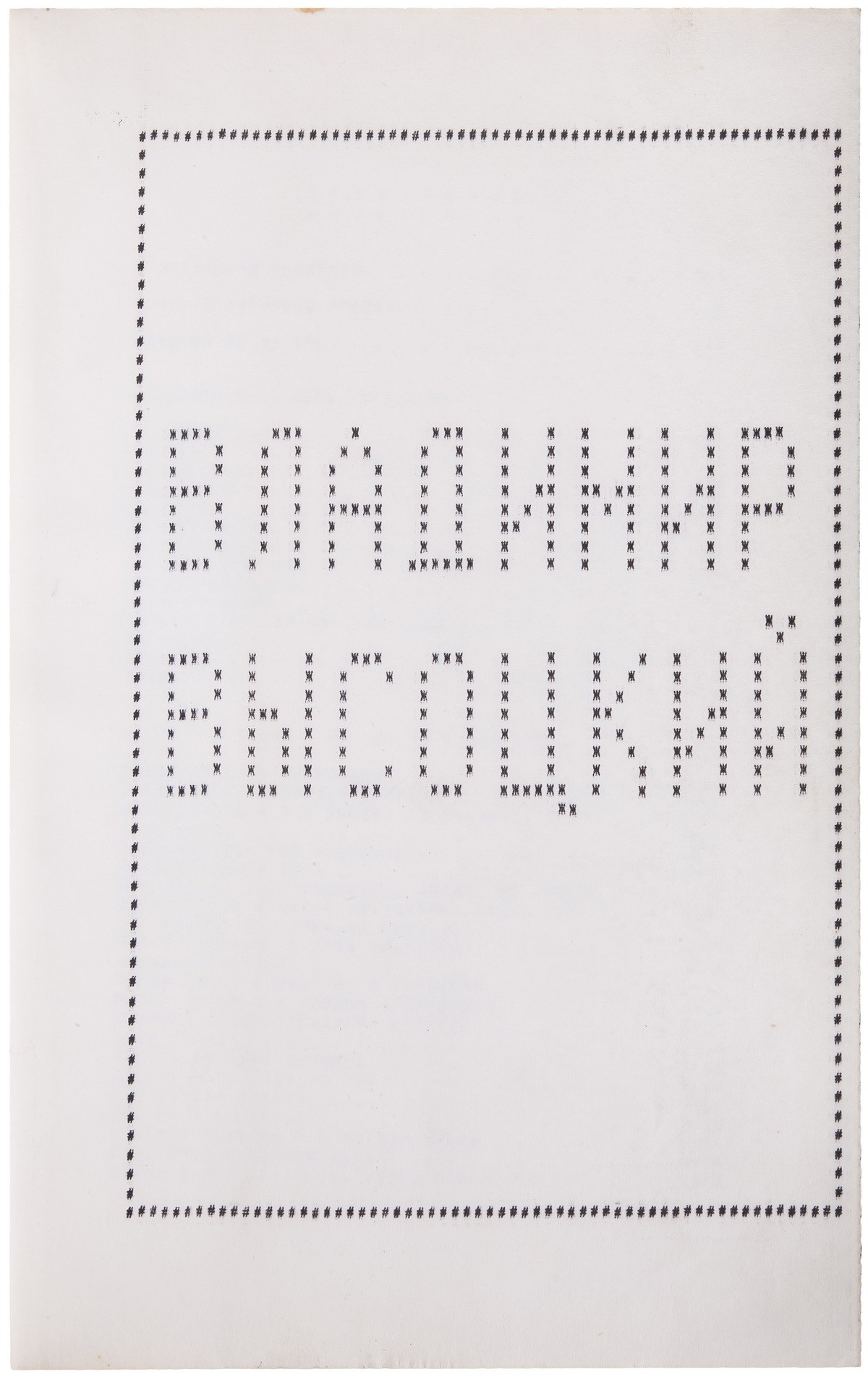 В «немом» ледериновом переплете. Текст напечатан на Алфавитно-цифровом печатающем устройстве (АЦПУ) ЭВМ. В альбом вошли стихотворения Е. Евтушенко, В. Гафта, А. Вознесенского и др., посвященные памяти В. Высоцкого.