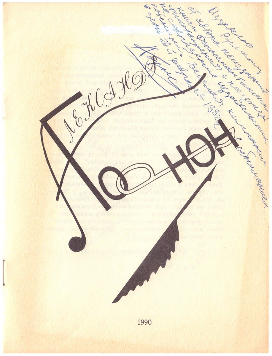 На тит.л. дарственная надпись автора, адресованная Руслану Элинину: «Издателю Руслану от автора неизданной книги фоносемантического стихотворения с надеждой на совпадение издательских [нрбч.] Веселая компания в день 20-й февраля 1992 г. С обниманием».