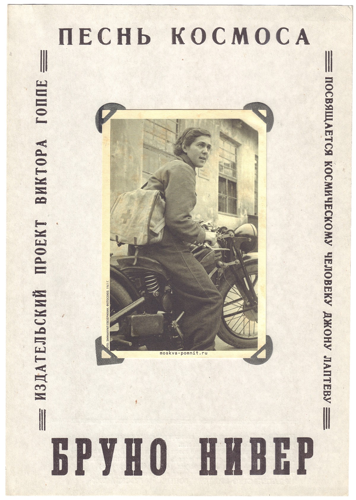 Макет книги (тираж впоследствии составил 10 экземпляров). Обложка выполнена с применением техники коллажа и пошуара. Илюстрации выполнены в технике шелкографии, в т.ч. с небольшими доработками акварелью. Листы с иллюстрациями содержат подпись автора. Штамп автора на втором листе. На тит. л. аппликация с репродукцией снимка Э. Евзерихина.
