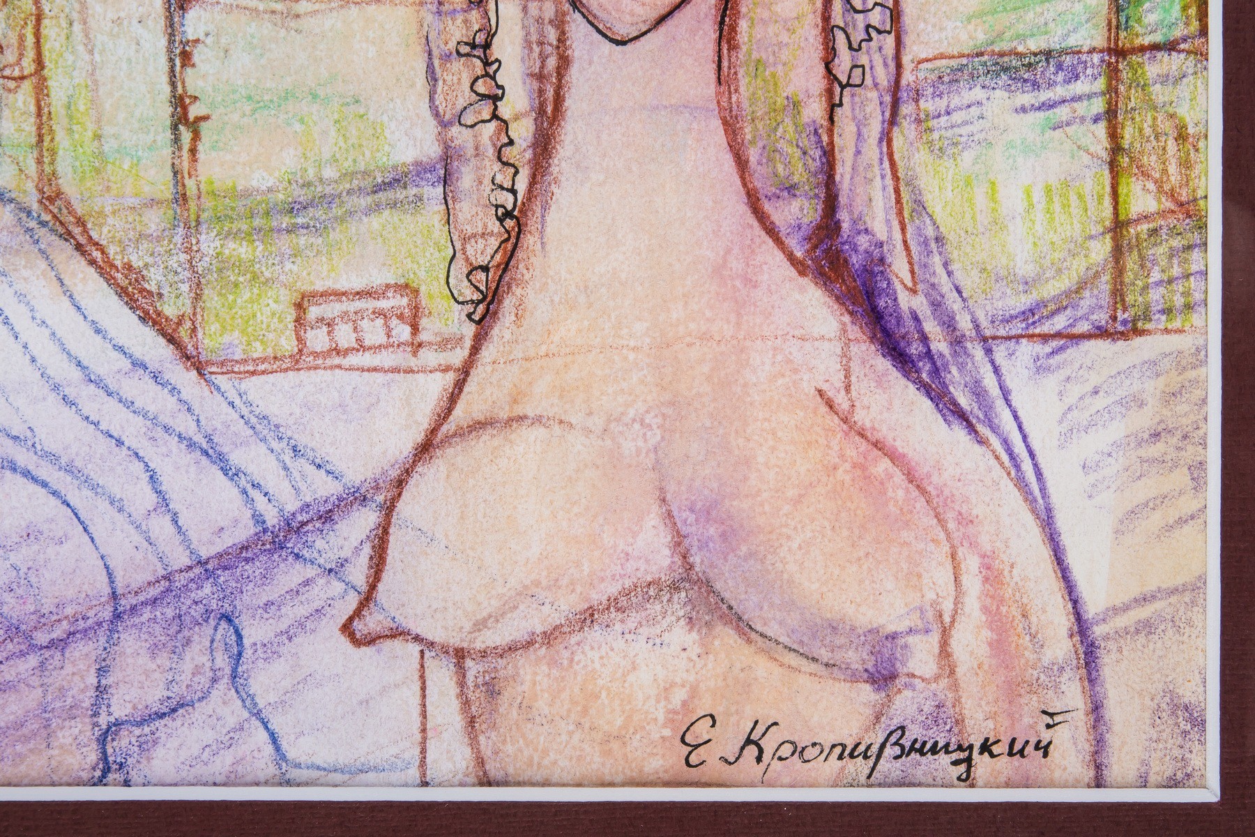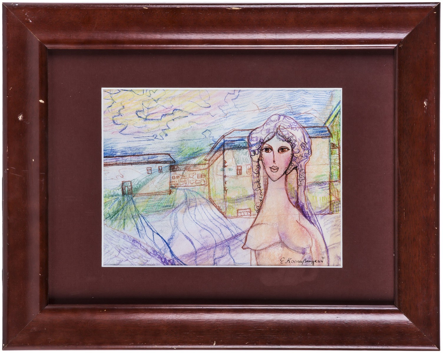 В раме, под стеклом. Авторская подпись в правом нижнем углу.