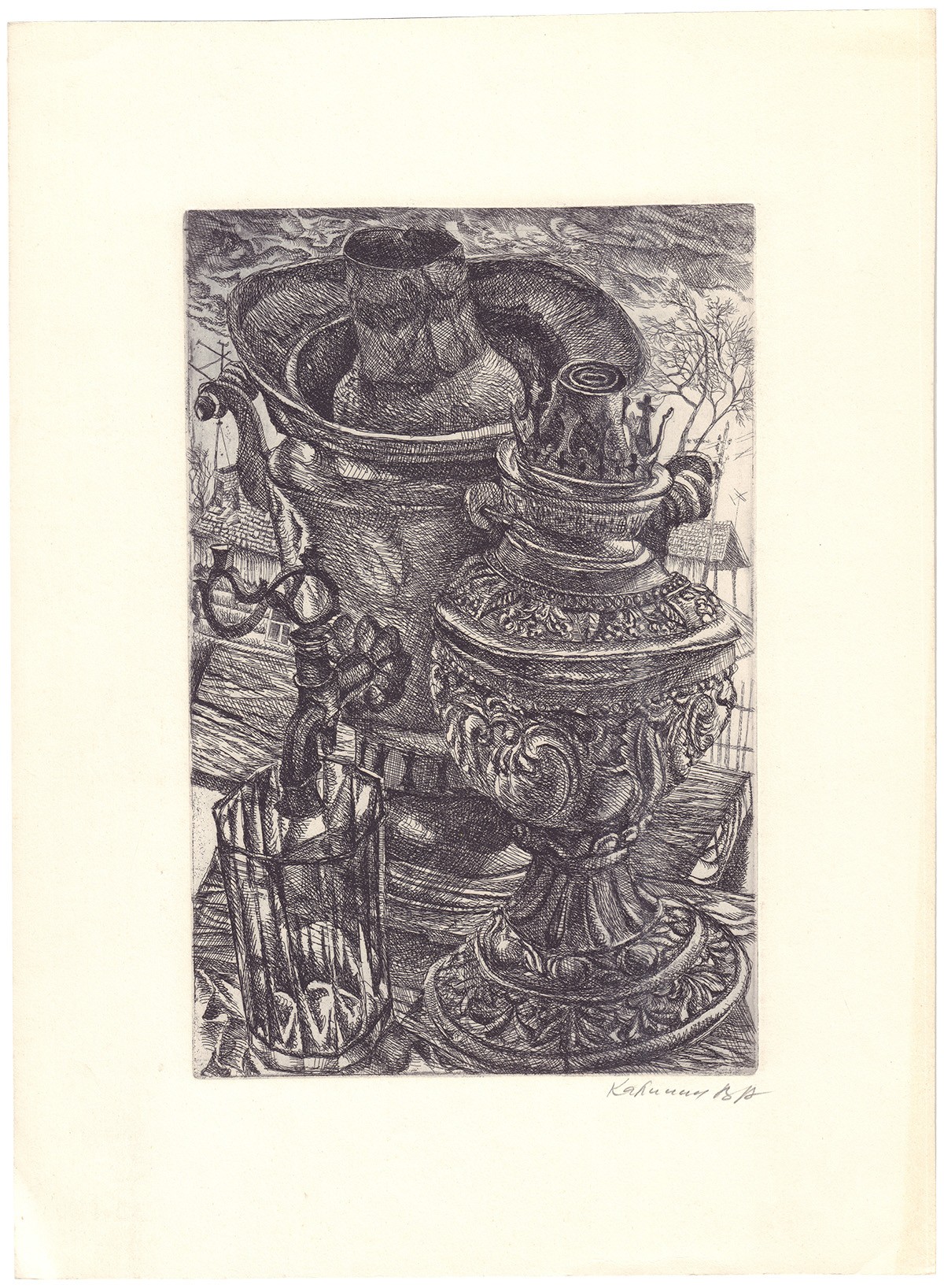 Калинин, В.В. Гравюра. Самовары. - 1970-е. - 39х28 см.