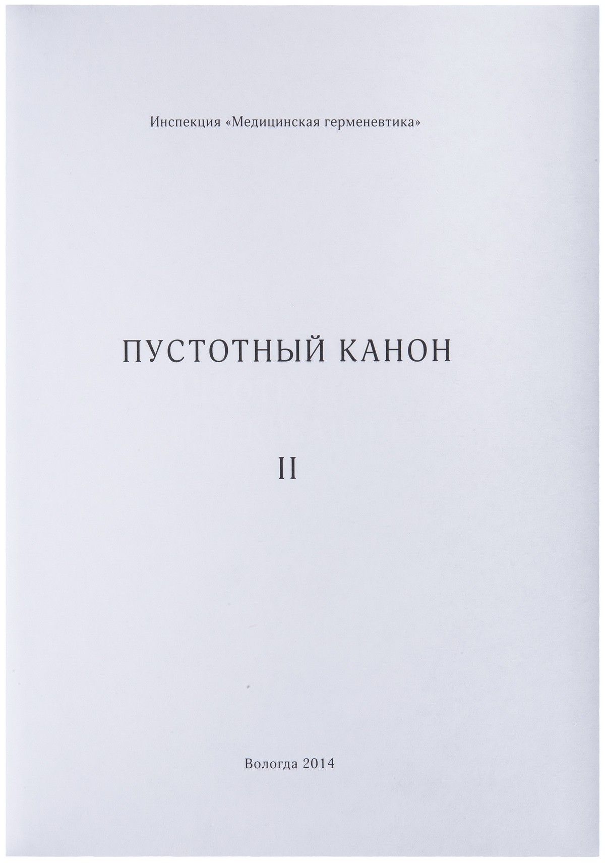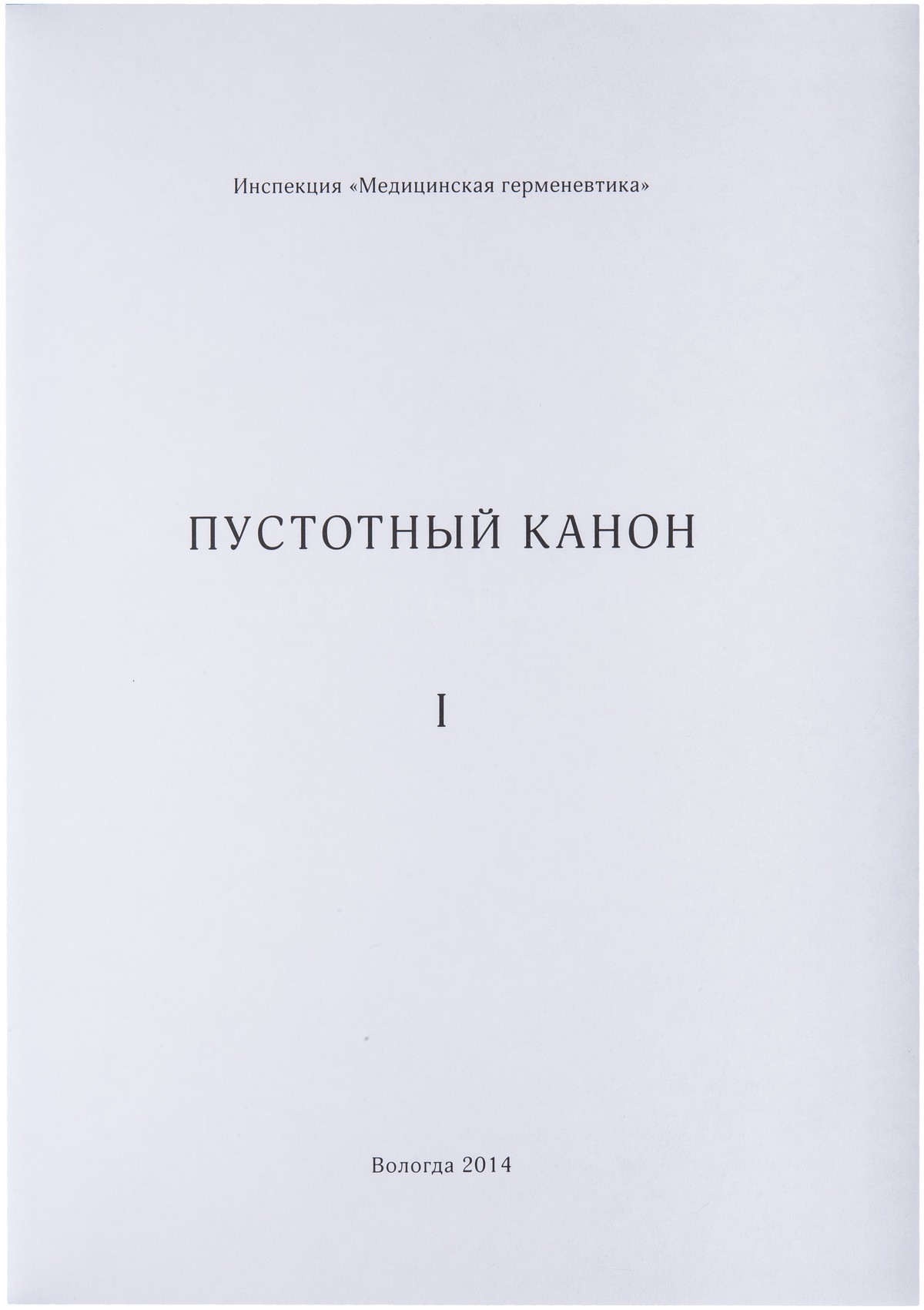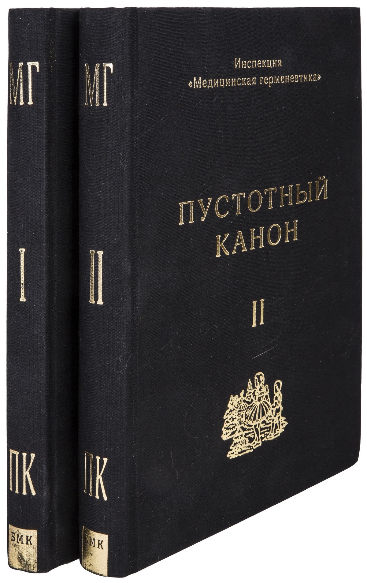 В двухтомник "Пустотный канон" вошли 7 книг из канона московской арт-группы "Инспекция Медицинская герменевтика", образованной в 1987 году Сергеем Ануфриевым, Павлом Пепперштейном и Юрием Лейдерманом. "Девять бесед", "Латекс", "Восьмидесятые годы", "Зона инкриминаций" "Идеотехника и рекреация", "Младший инспектор", "Швейцария + Медицина".