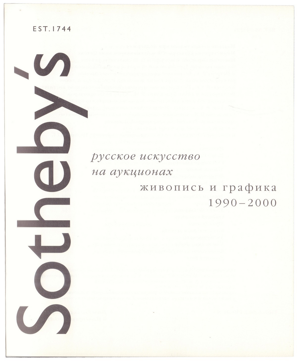 Каталог включает в себя информацию обо всех произведениях живописи и графики, которые были проданы на русских торгах Аукционного дома Sotheby's в период с 1990 по 2000 г. Главный редактор, Максим Боксер - основатель галереи «Шар и Крест».