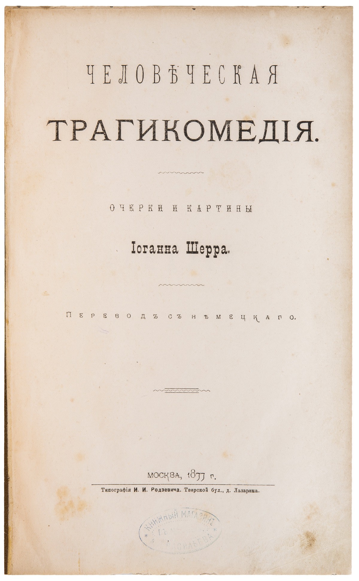 Шт. книжного магазина А.Л. Васильева на тит. л. Укрепл. с. 46 полосками скотча. Редкие «лисьи» пятна.