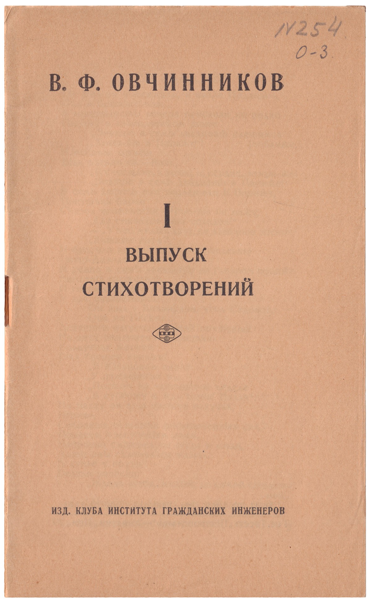 Овчинников Владимир Федорович (1890–1973) — архитектор, драматург, поэт. Первая и единственная книга поэта.