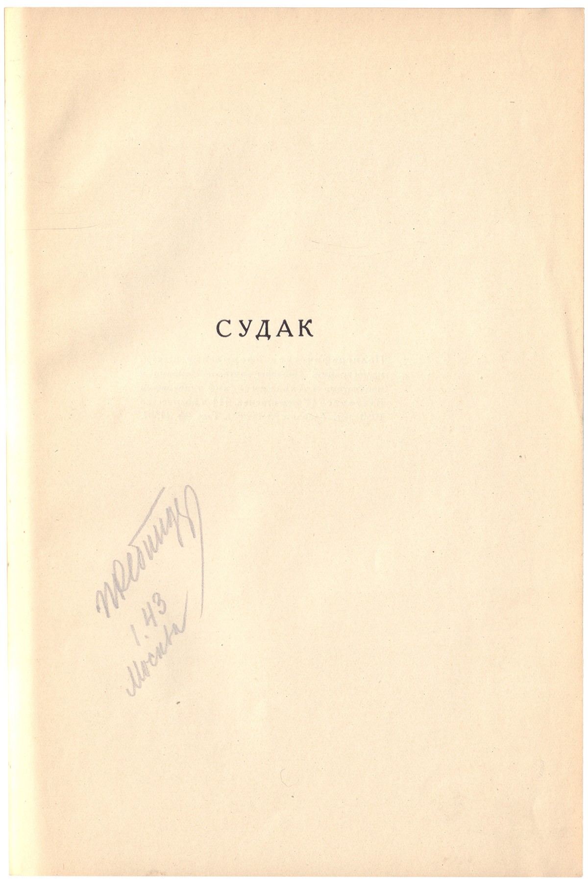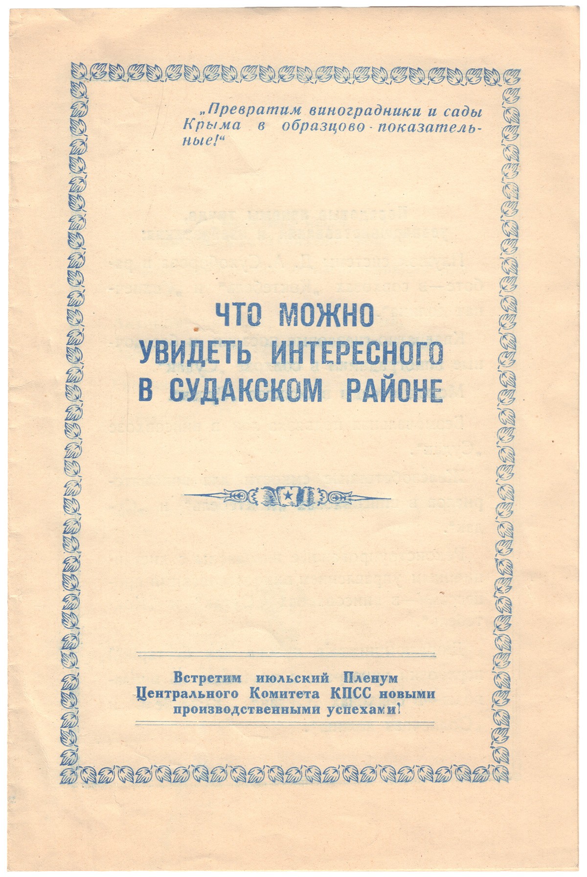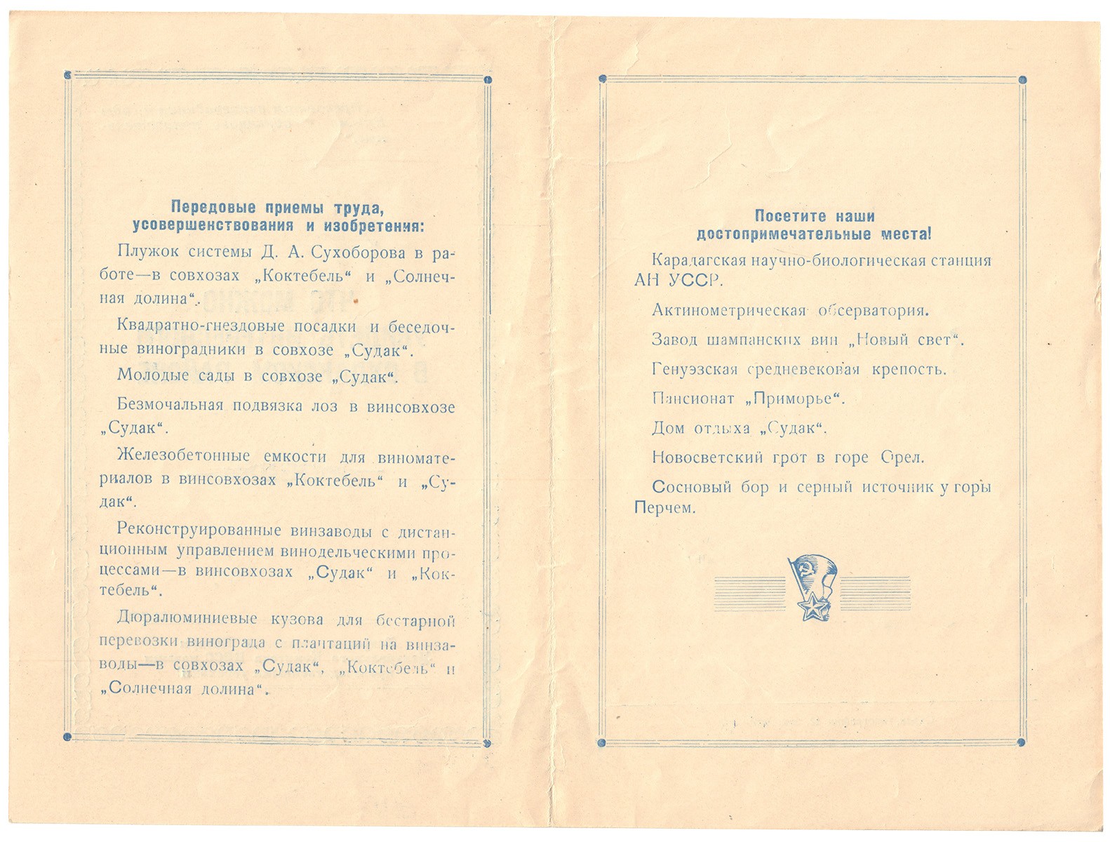 Прилагается буклет: Что можно увидеть интересного в Судакском районе. - Судак: [б.и., 1940-50е?]. - 4 с.; 20,6х13,7 см.