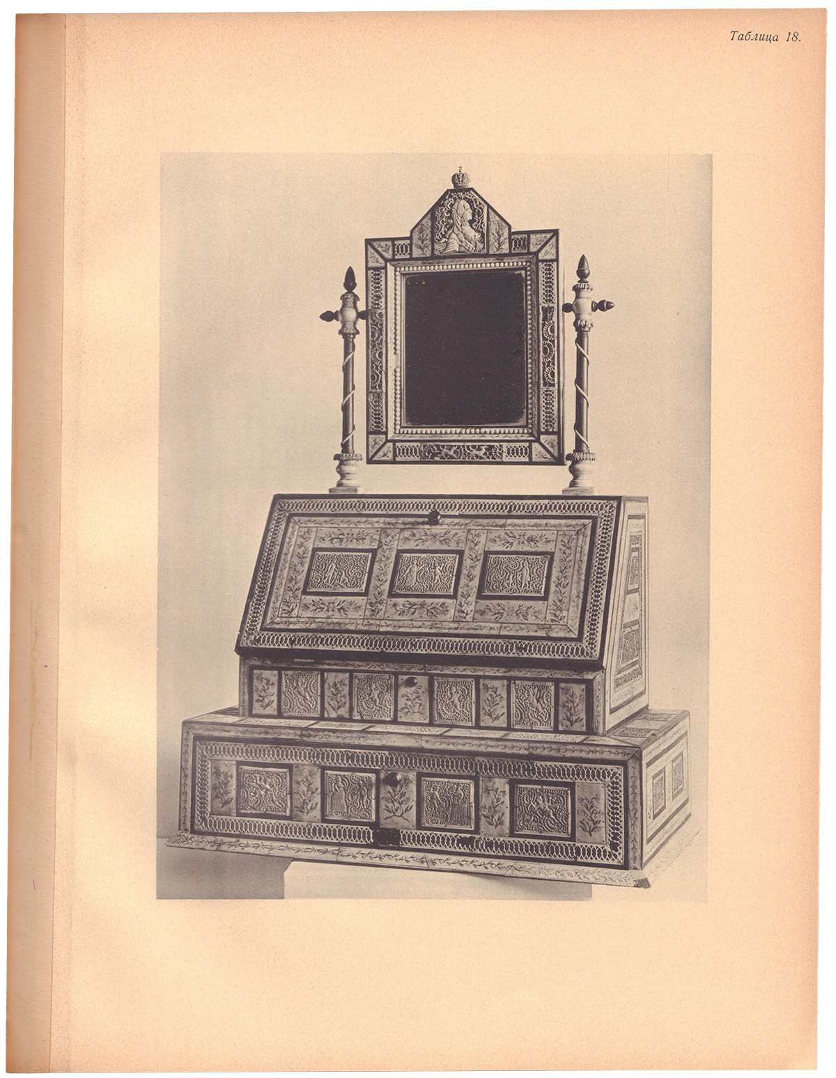 Альбом посвящен коллекции резной кости П.И. Щукина, подаренной собирателем Российскому историческому музею. Лидия Ивановна Свионтковская-Воронова (1887-1972) — искусствовед, специалист по декоративно-прикладному искусству и художественным промыслам.