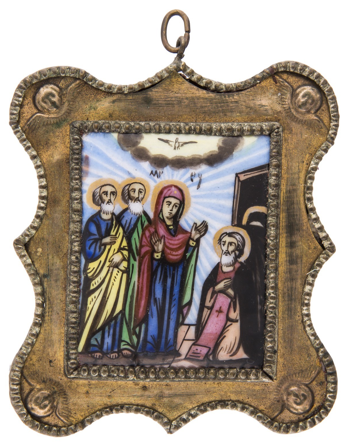 Расписная эмаль; медный сплав, штамп.