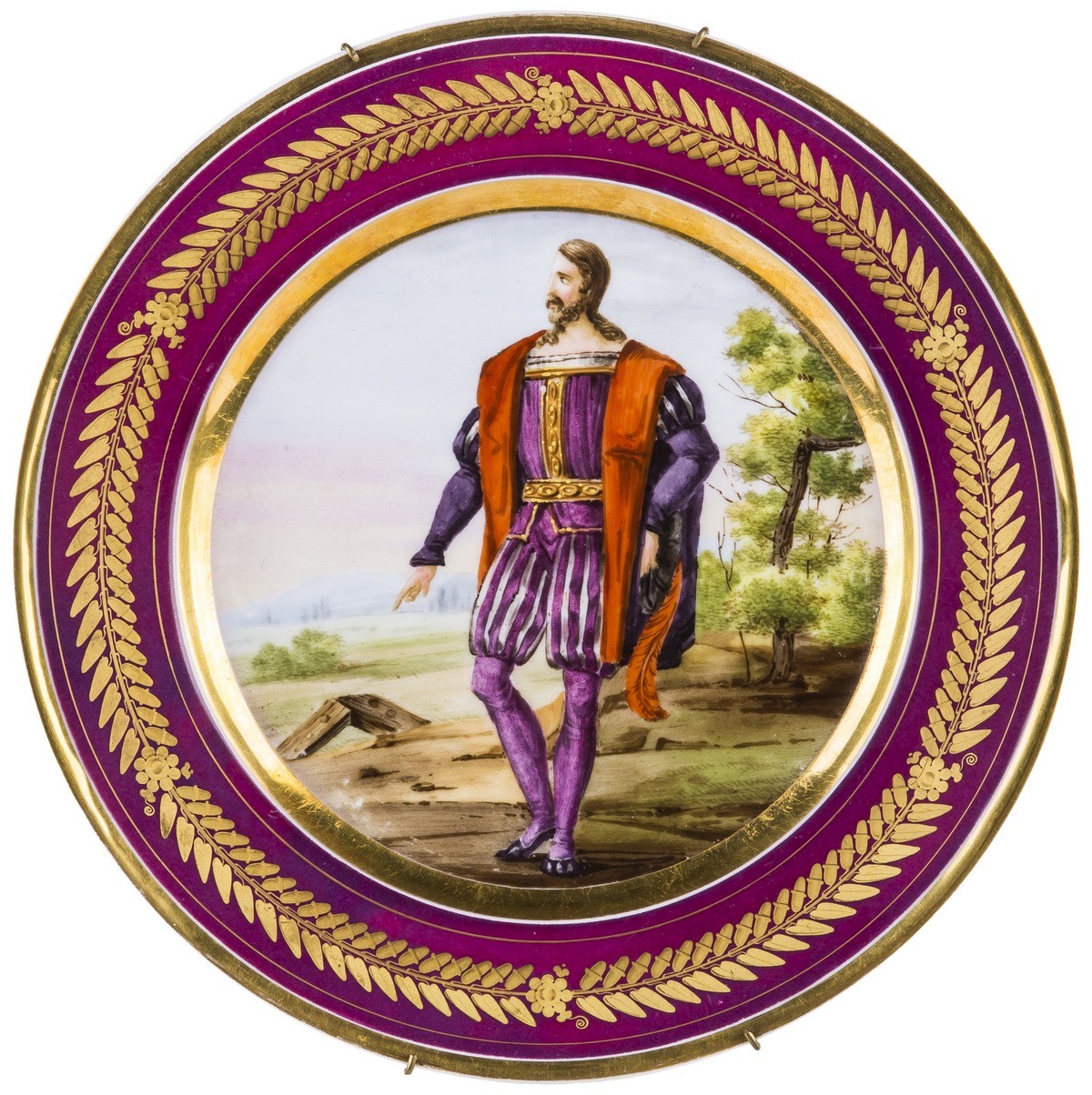 Фарфор. Роспись, золочение. На обороте крепления для настенных тарелок.