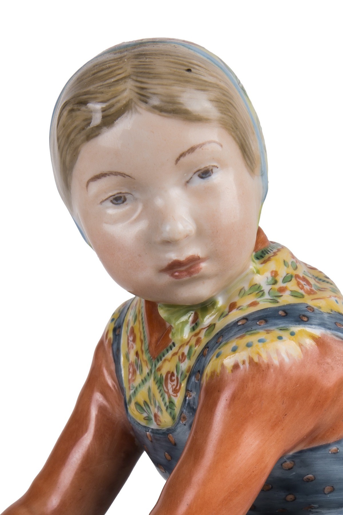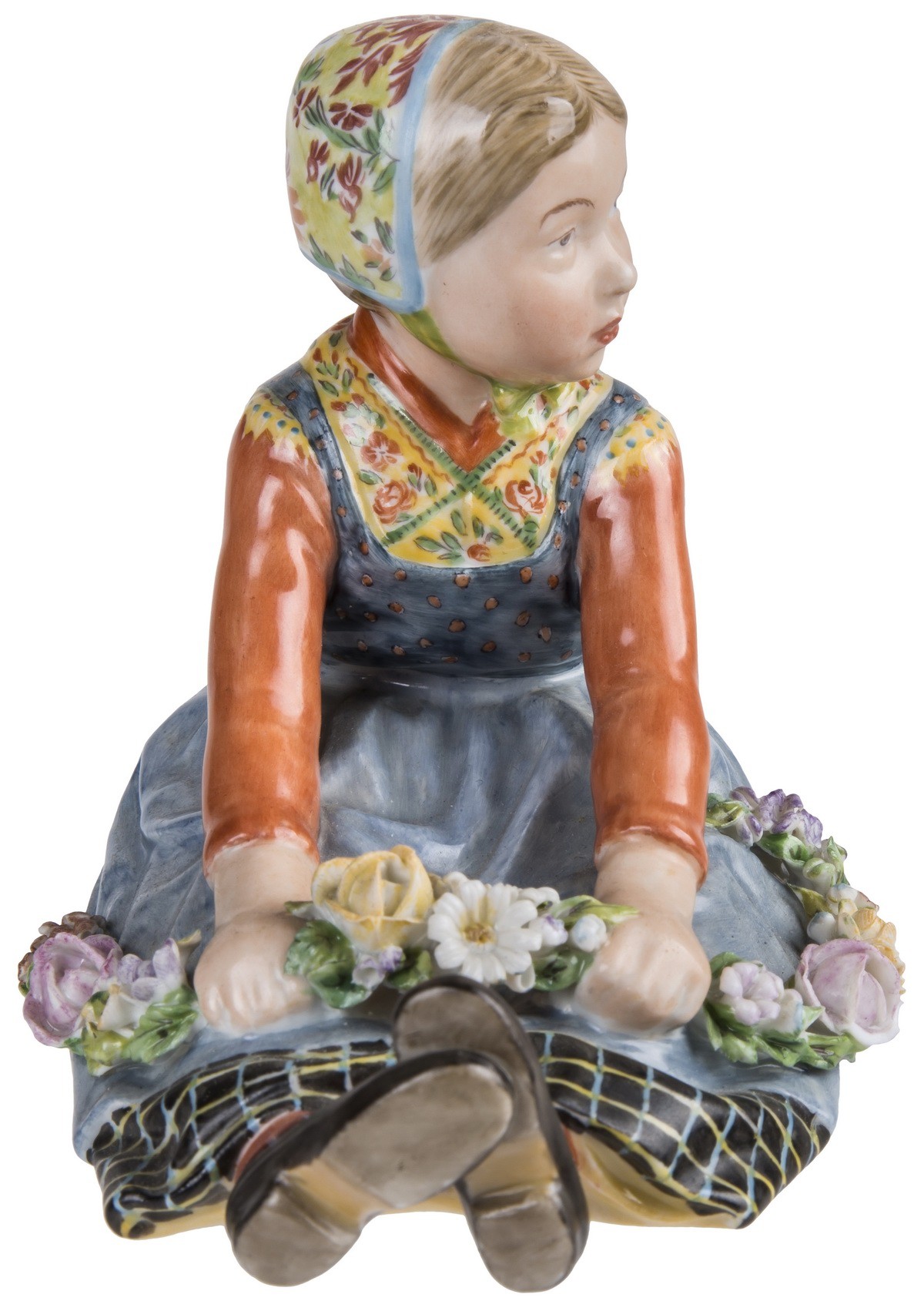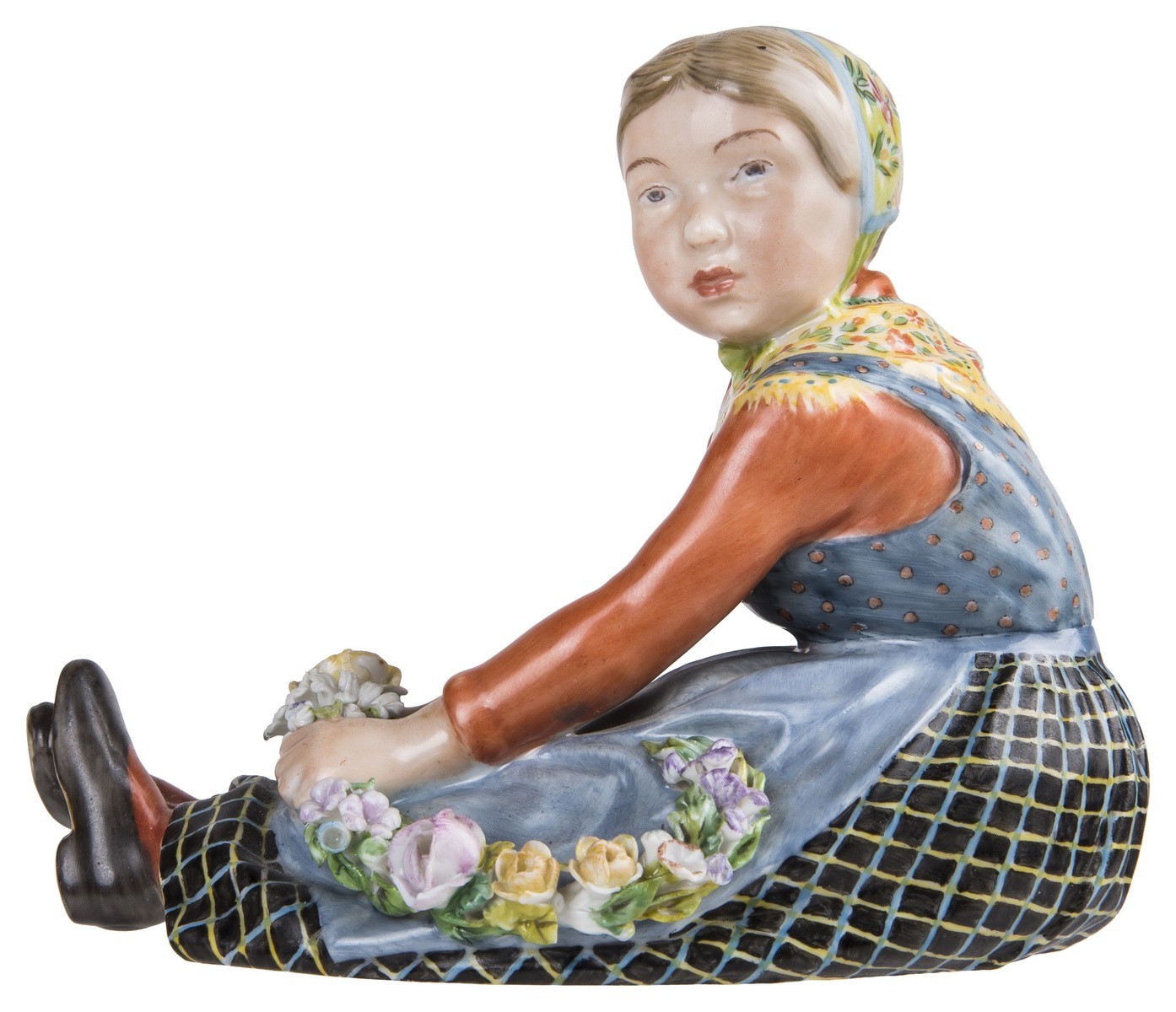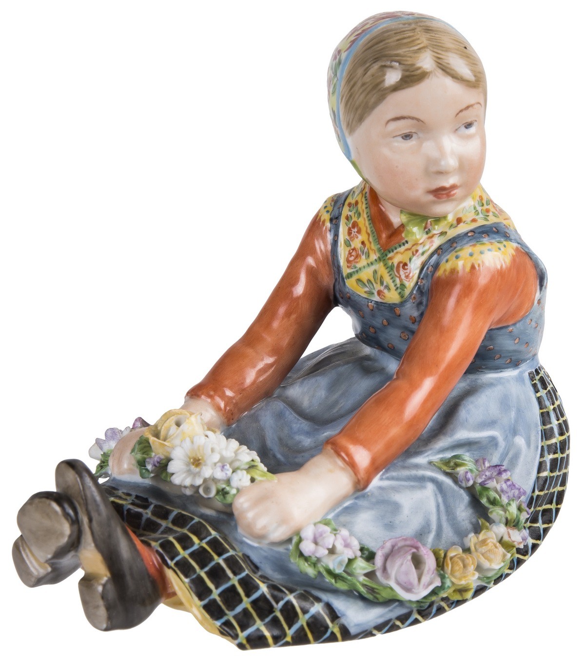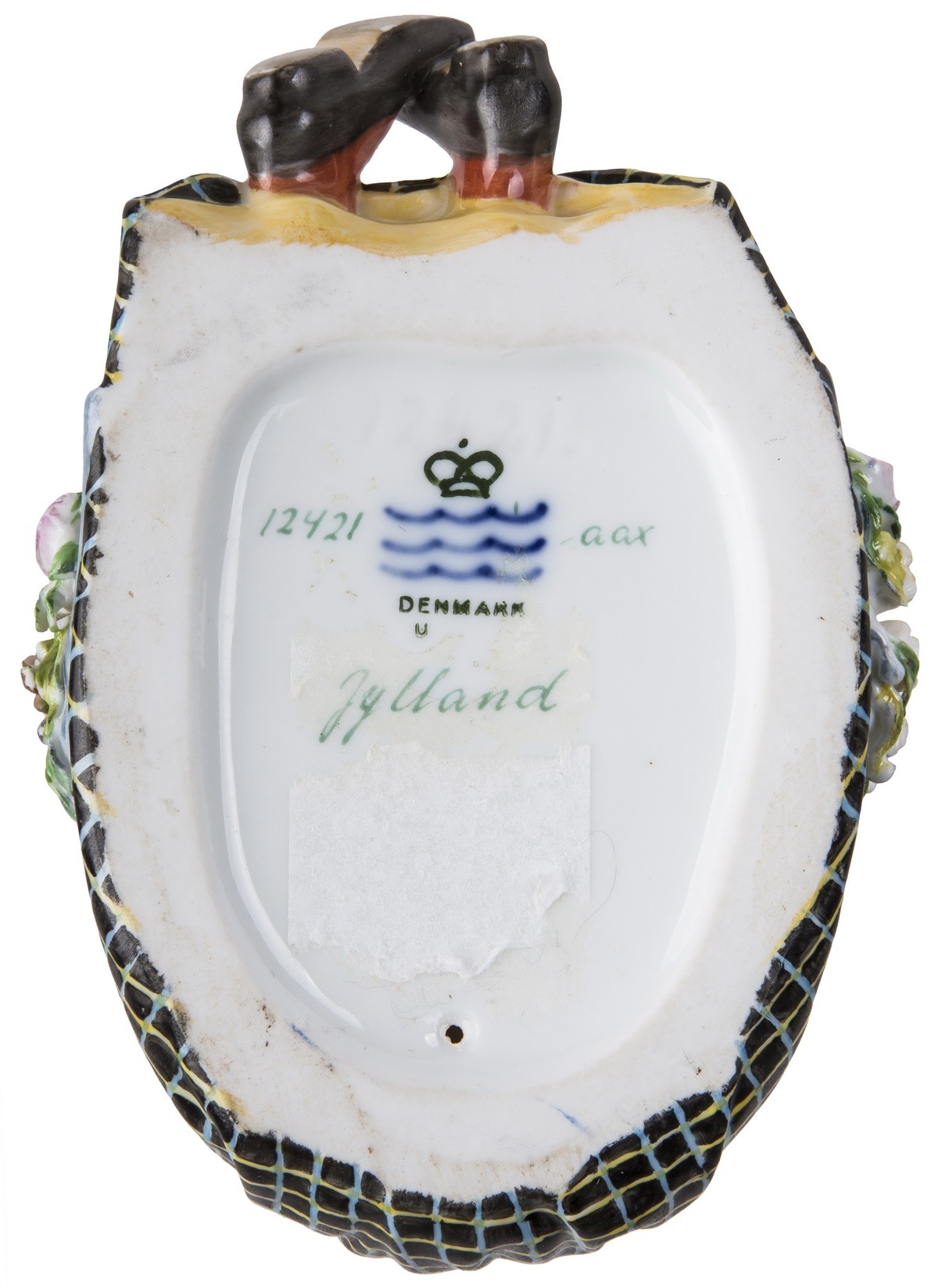 Фарфор, роспись. Марка: корона над волной, номер «12421», инициалы автора росписи: «GGX». Серия была создана в 1923 году к празднованию Серебряной годовщины Его Величества короля Кристиана X и королевы Александры.