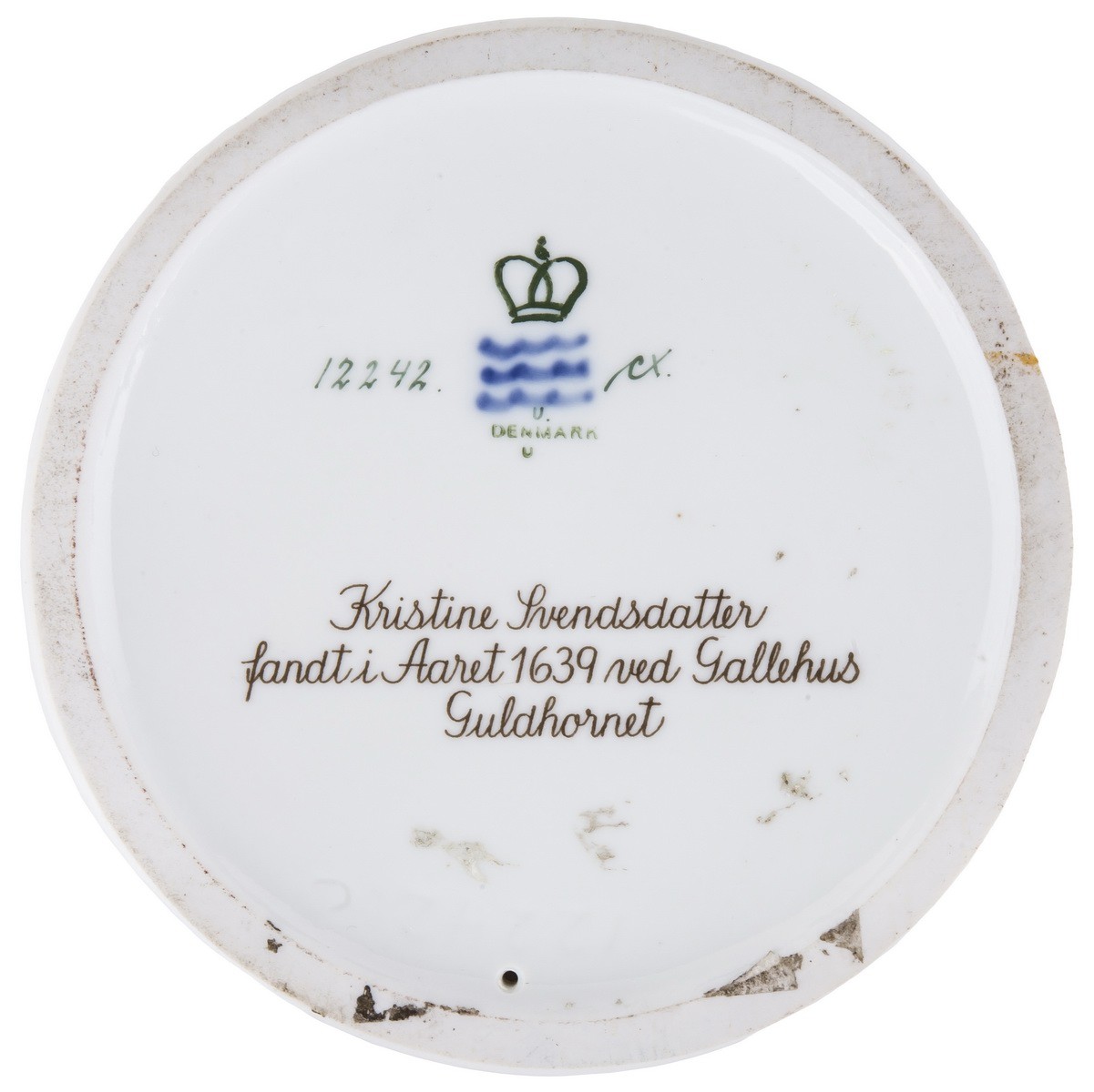 Фарфор, роспись. Марка: корона над волной, номер «12242», инициалы автора росписи: «неразбор», зеленым «Denmark».