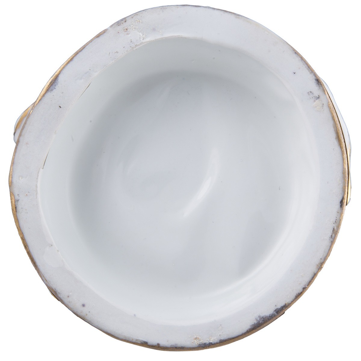 Фарфор, подглазурная роспись, золочение. В нижней части основания авторские инициалы и дата: «Т.Н. 1970».