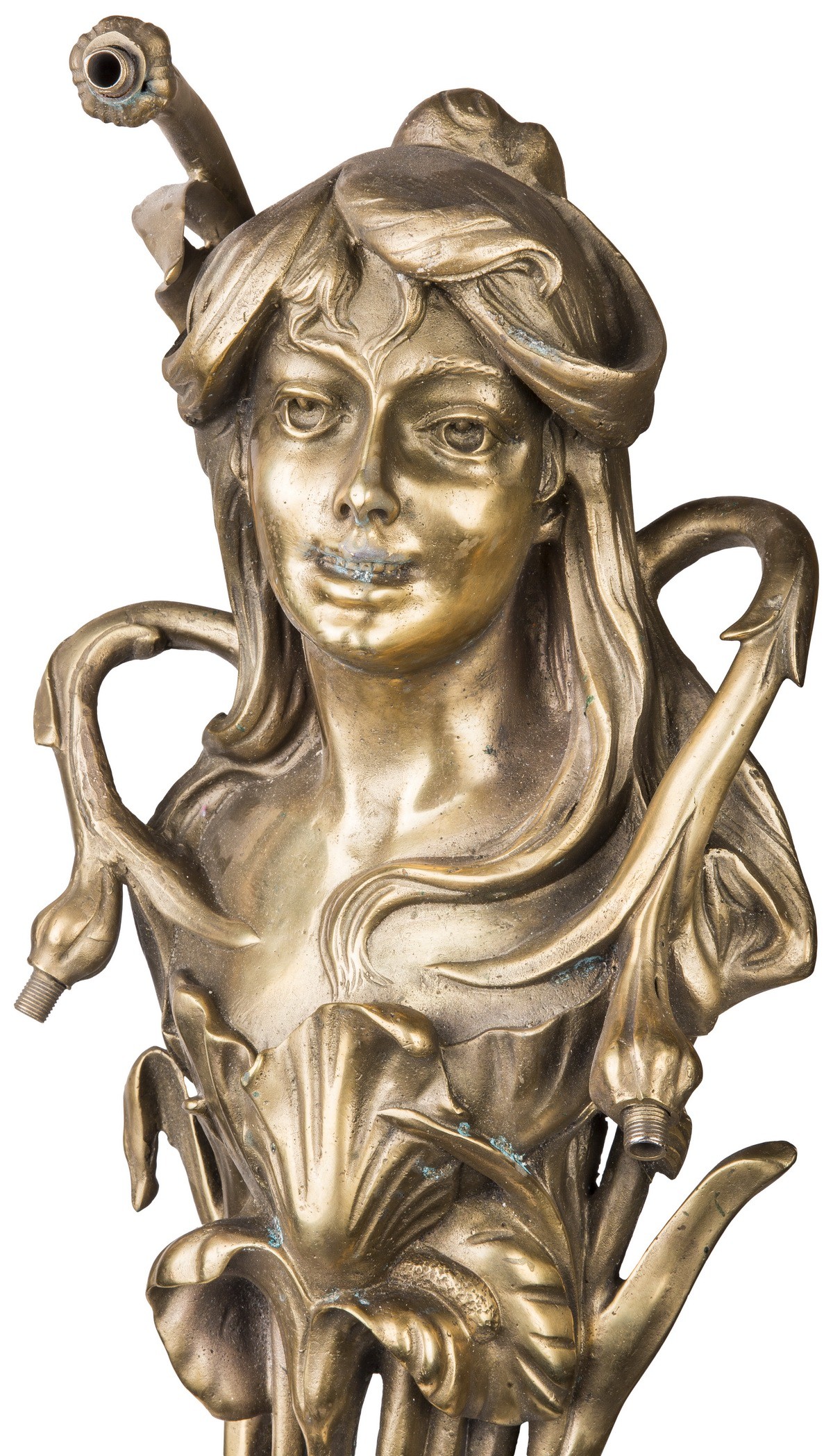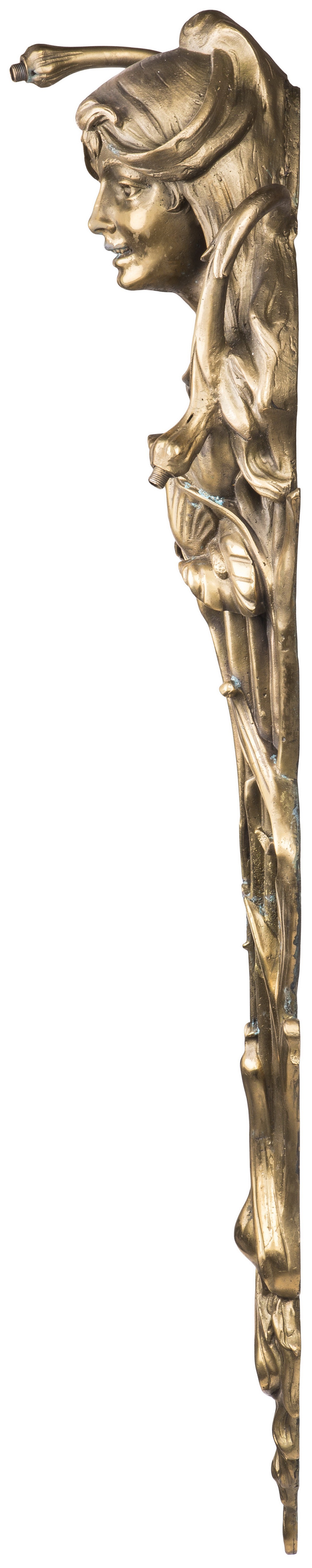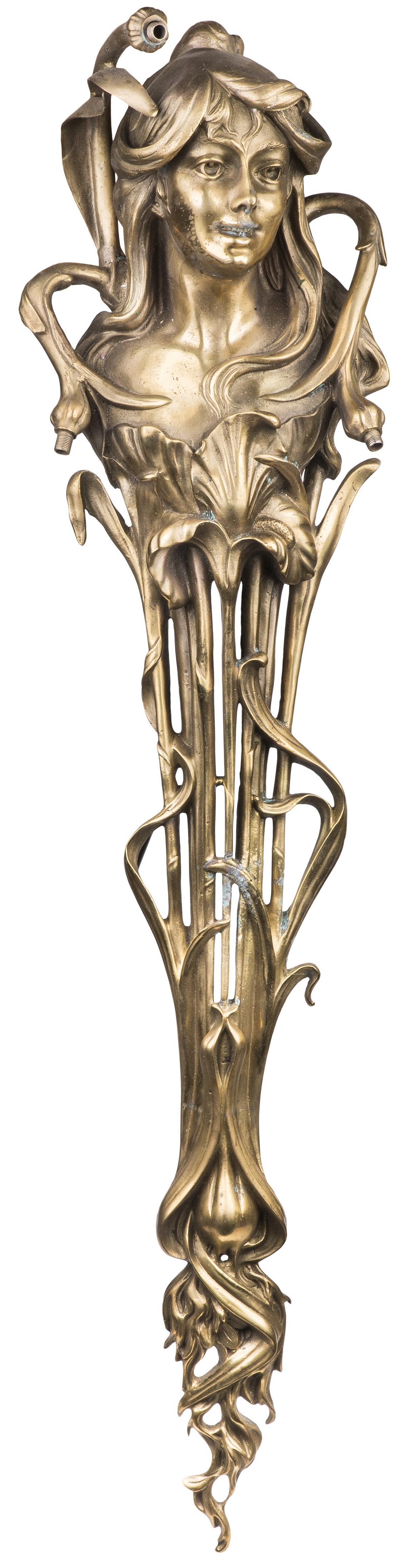 Бронза; литье, патинирование, золочение. Настенный светильник (бра) в стиле «Ар Нуво» на три свечи.