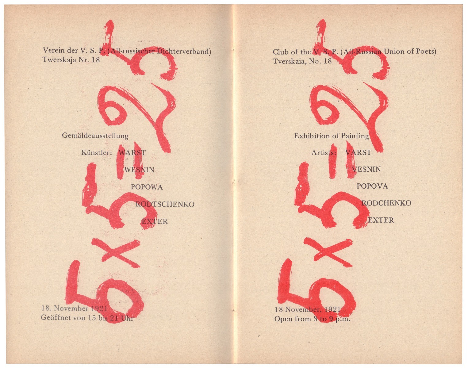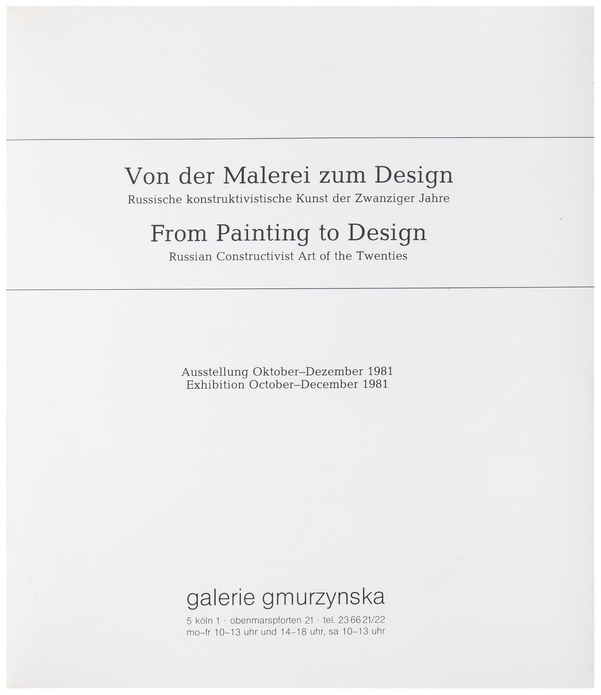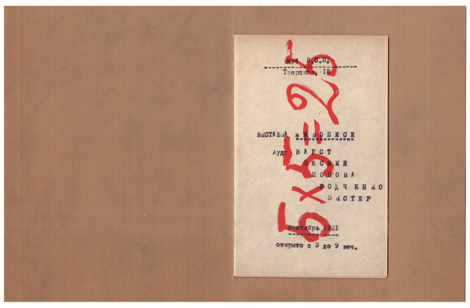 В иллюстрированном издательском картонаже. Текст парал. на англ. и нем. яз. Исторические труды Ольги Розановой, Александра Родченко, Варвары Степановой и Сергея Сенькина; с комментариями Александра Лаврентьева. В кармашек на нахз. вложен репринт каталога выставки живописи в Клубе В.С.П. в сентябре 1921 года.