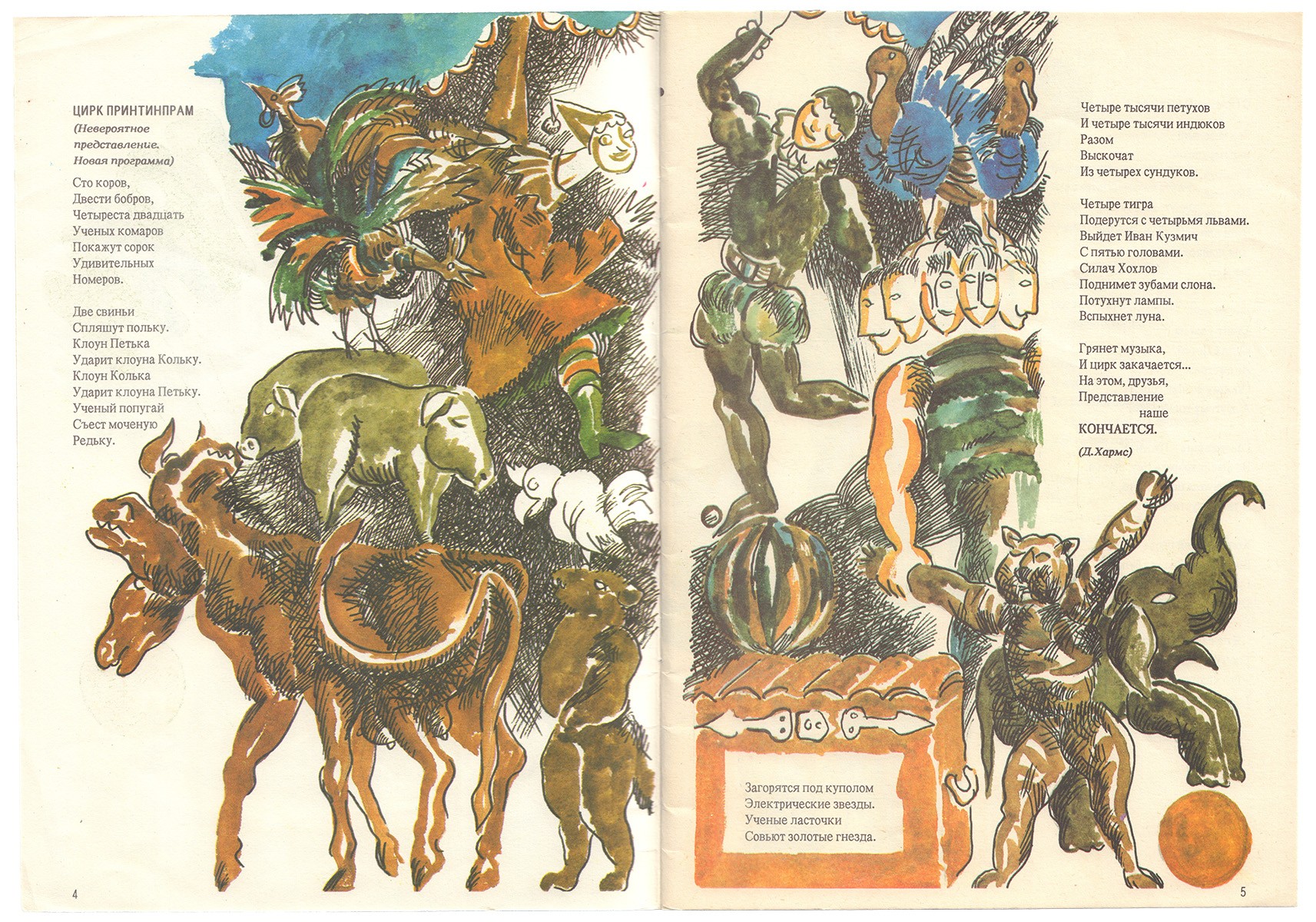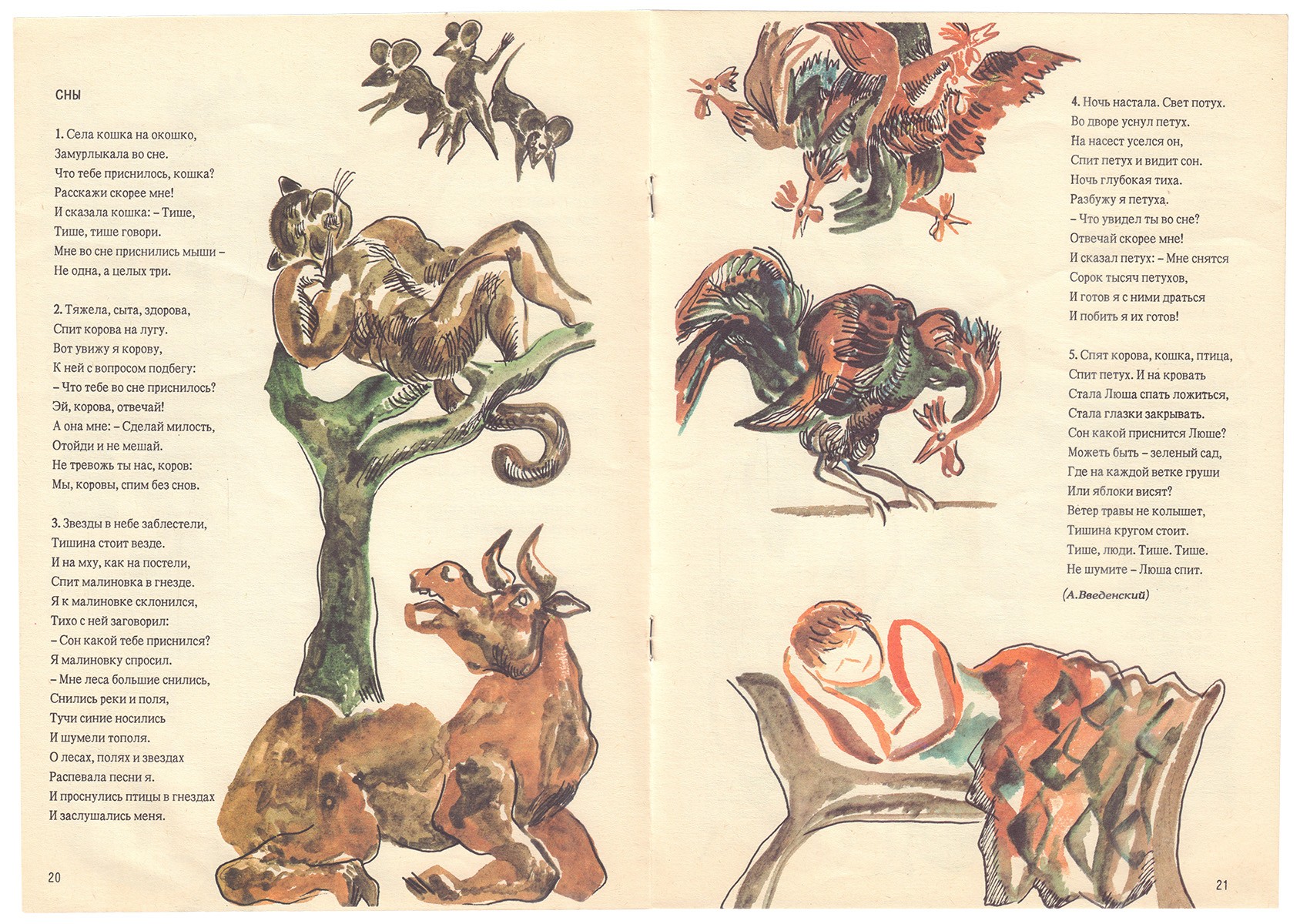 Александр Иванович Введенский (1904-1941) — поэт, драматург, детский писатель, член Объединения реального искусства (ОБЭРИУ). Подавляющее большинство «взрослых» текстов Введенского было опубликовано посмертно. В 1925 году познакомился с Даниилом Хармсом, с которым принимал участие в деятельности авангардной литературно-театральной группы, утвердившейся в конце 1927 г. под названием «ОБЭРИУ». В это же время Введенский, Хармс и некоторые другие ОБЭРИУты по предложению С.Я. Маршака начали сотрудничать с детскими журналами «ЁЖ» и «ЧИЖ». Александр Иванович практически постоянно печатался в них, а также выпустил 26 детских книг. 27 сентября 1941 г. был арестован по обвинению в контрреволюционной агитации. По одной из последних версий, был этапирован в Казань, но скончался в пути 19 декабря 1941 г.