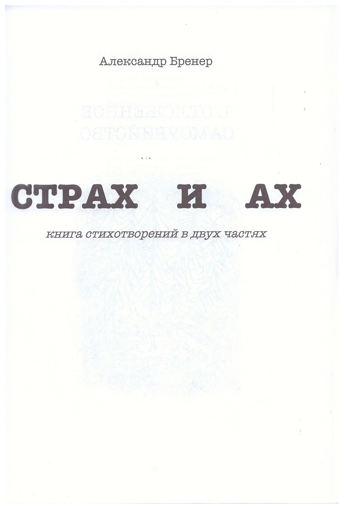 Бренер, А.Д. Страх и ах: Книга стихотворений в двух частях / Александр Бренер, рис. А. Бренера и Б. Шурц. - М.: Полифем, 2022. - 96 с., ил.; 31х22 см. - 200 экз.