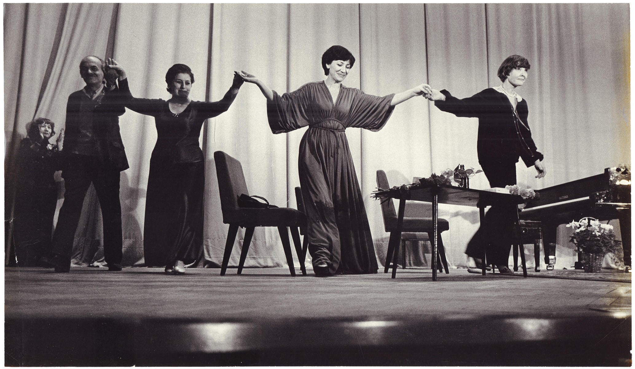 В концертной программе приняли участие Булат Окуджава, Белла Ахмадулина Нани Брегвадзе. Было всего три концерта. Два – в Москве в Доме литераторов, и один - в Тбилиси. В этот же вечер Белла написала стихи о романсе «Калитка», который исполнила Брегвадзе и посвятила их Нани: "То ль в расцвете судьбы, то ль на склоне, / Что я знаю про век и про дни? / Отвори мне калитку в былое / И былым моё время продли". Нани Георгиевна Брегвадзе (1936) — советская и грузинская певица, пианистка, педагог, народная артистка СССР (1983). Булат Шалвович Окуджава (1924–1997) — поэт, бард, прозаик, сценарист. Автор около двухсот авторских и эстрадных песен, написанных на собственные стихи и кавказские народные сказания (эпосы), один из наиболее ярких представителей жанра авторской песни в 1950-е-1980-е годы. Белла Ахатовна Ахмадулина (Изабелла; 1937–2010) — поэт, писатель, переводчик, один из крупнейших русских лирических поэтов второй половины XX века. В 1979 году участвовала в создании неподцензурного литературного альманаха «Метрополь».