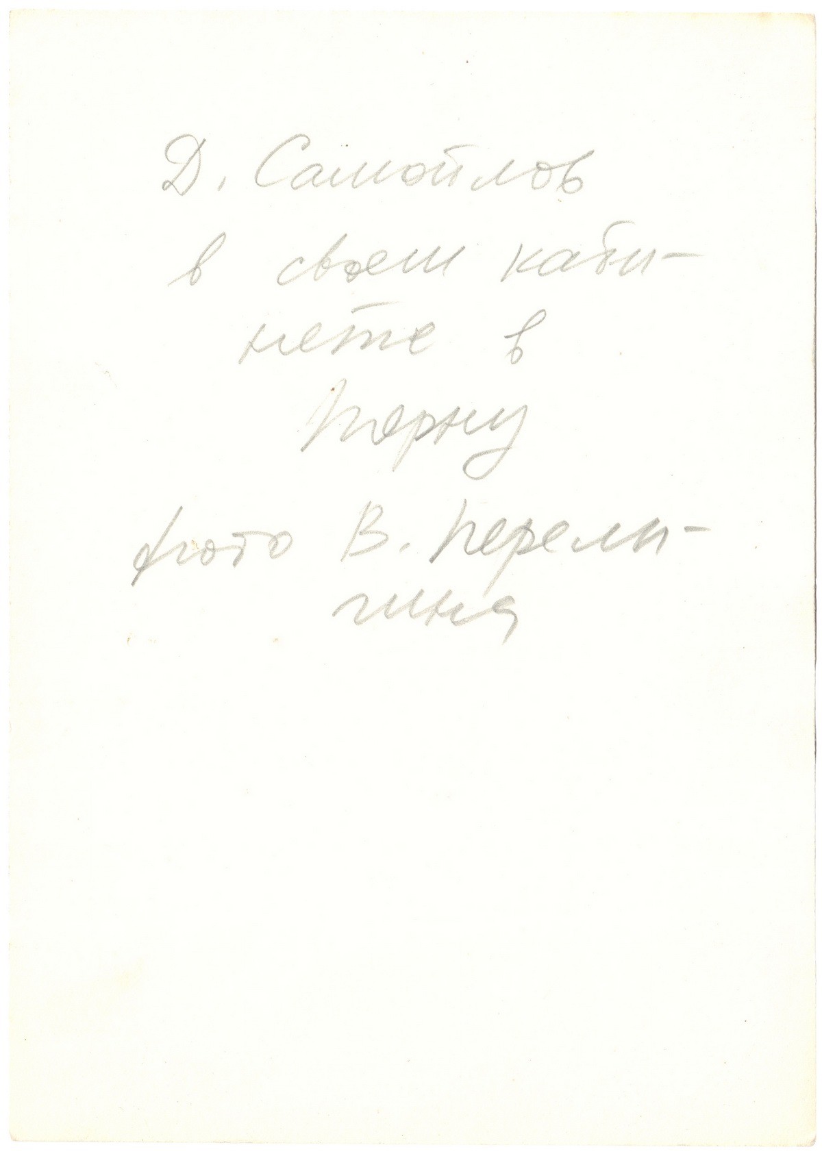 На обороте владельческие надписи. Виктор Александрович Перелыгин (1939) - фотограф, мемуарист. Выпускник Тартурского университета, более 40 лет работал учителем русского языка в Пярну. В 1977 познакомился и подружился с Д. Самойловым. Автор «Пярнуского альбома» (1991) и книги «Давид Самойлов в Пярну: Дневник Виктора Перелыгина» (Таллинн, 2020).