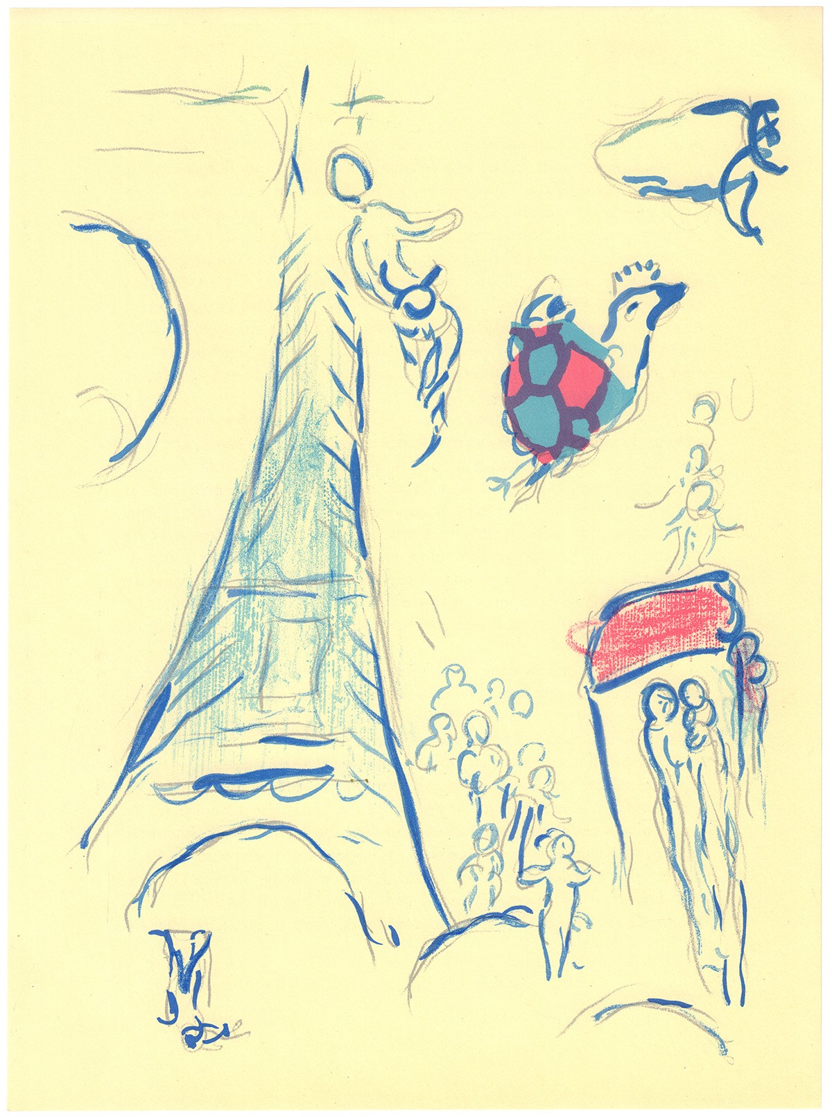 Литография из книги «Le plafond de l'opéra de par Marc Chagall» с изображением фрагмента эскиза для плафона оперы Гарнье в Париже. - Франция, 1965 год. - 32х24 см.