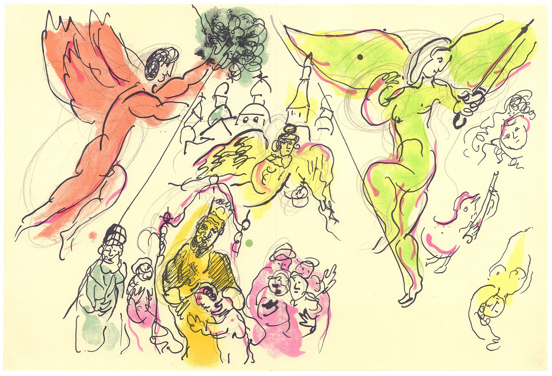 Литография из книги «Le plafond de l'opéra de par Marc Chagall» с изображением фрагмента эскиза для плафона оперы Гарнье в Париже. - Франция, 1965 год. - 32х24 см.