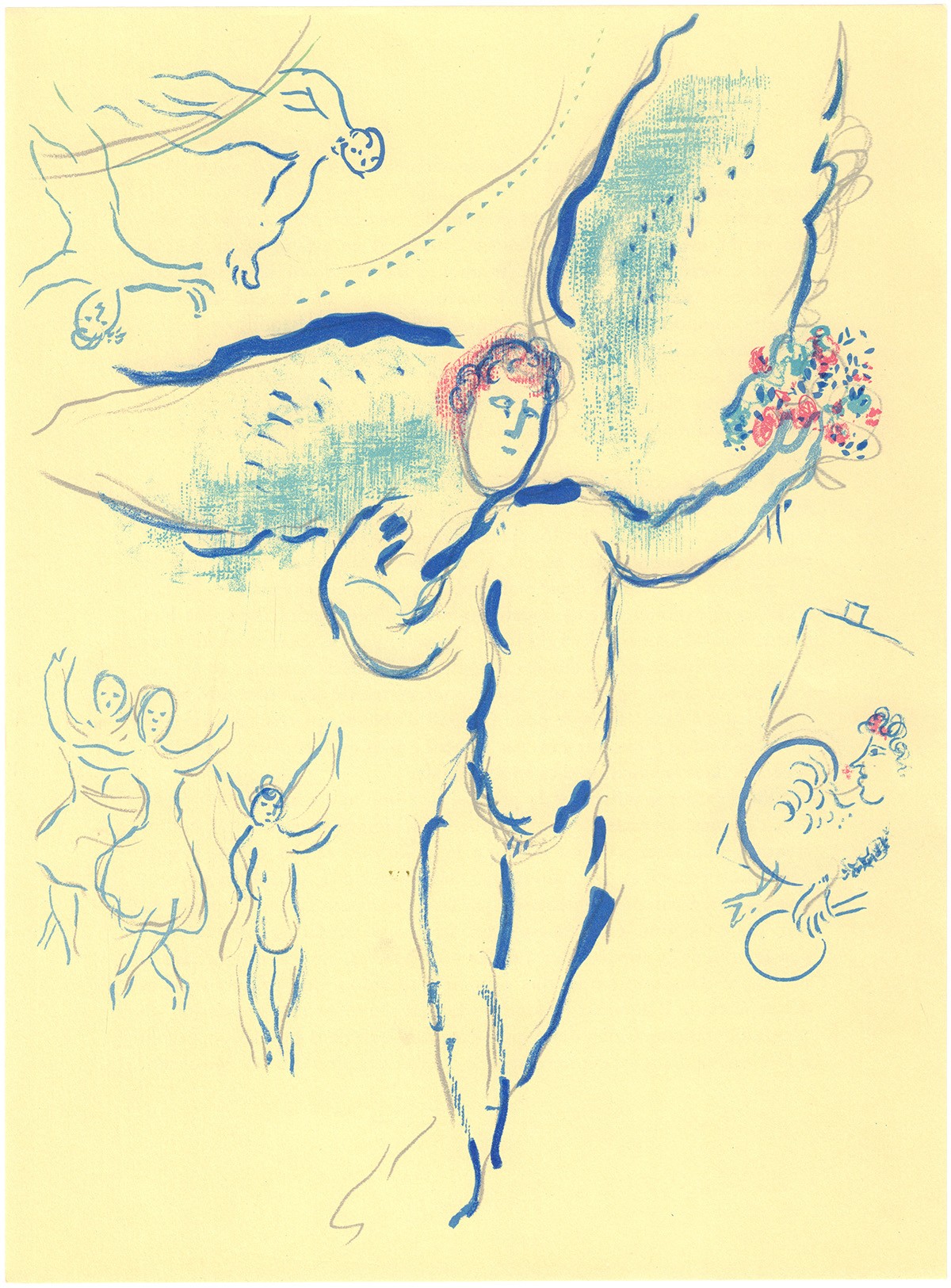 Литография из книги «Le plafond de l'opéra de par Marc Chagall» с изображением фрагмента эскиза для плафона оперы Гарнье в Париже. - Франция, 1965 год. - 32х24 см.