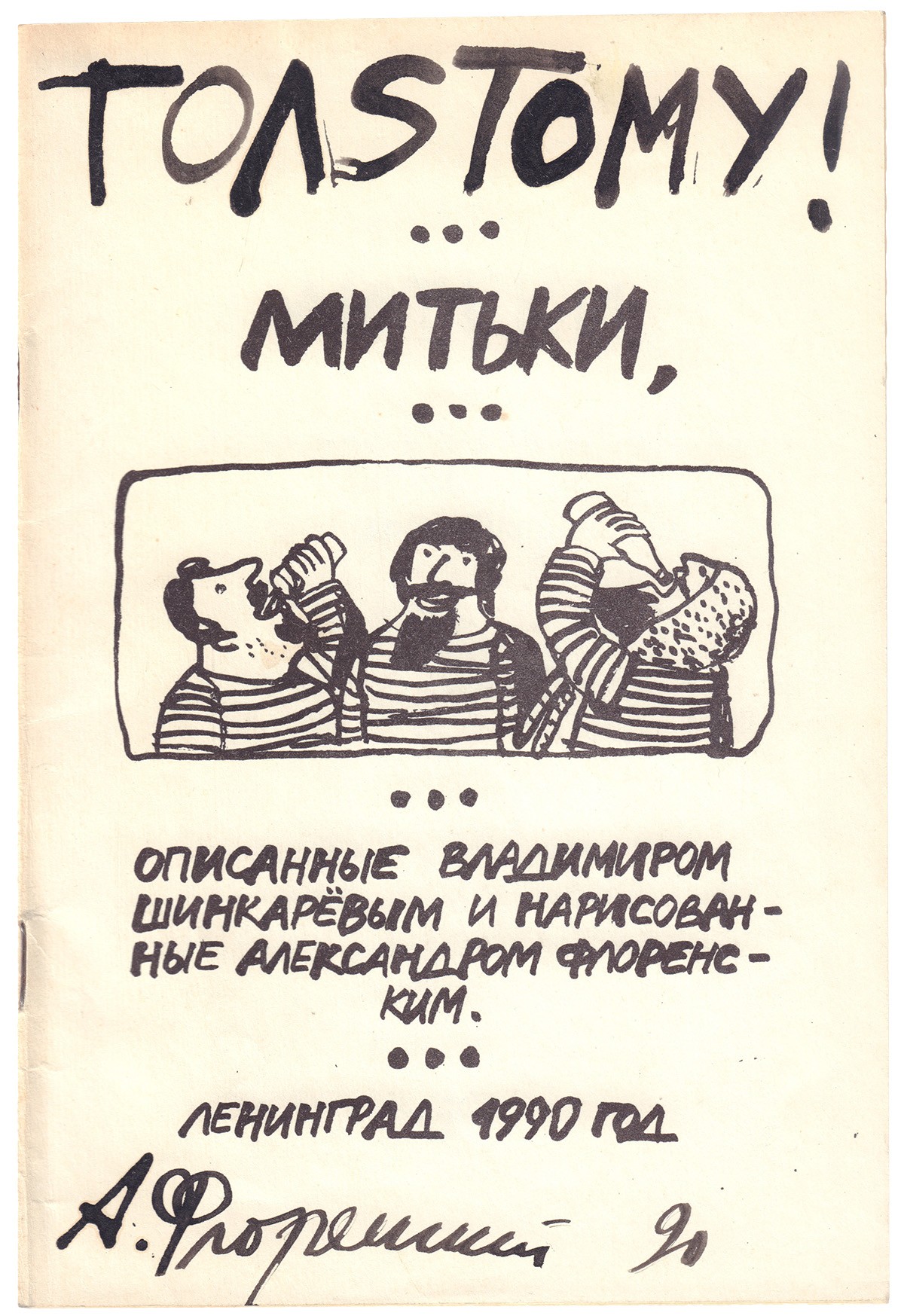 В иллюстрированной издательской обложке. Вверху и внизу первой обл.ожки черной тушью выполнены андписи "Толстому! А. Флоренский. 91".