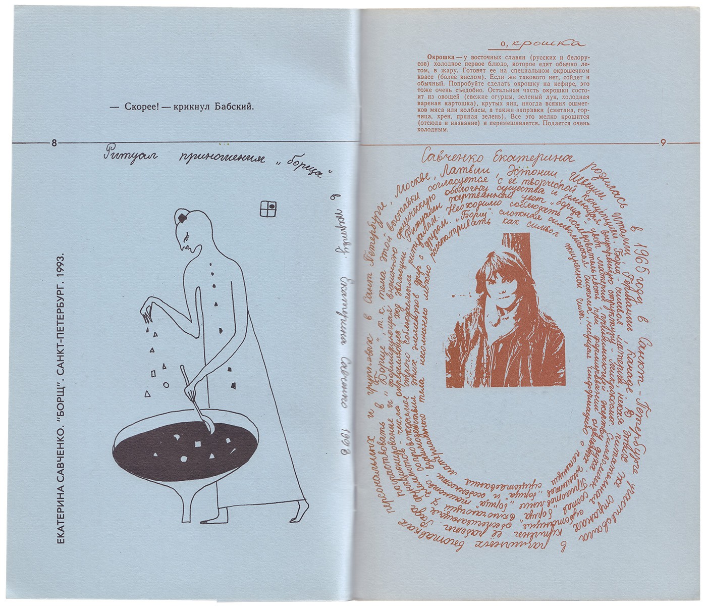 В иллюстрированной издательской обложке и суперобложке. "Борщ" трактуется в каталоге как метафора художественной жизни конца века: самые разные "по цвету и вкусу" художники плавают в "бульоне культурной жизни". Свыше 80 художников из России, Франции, Великобритании, Германии, Норвегии и Дании, участвующих в приготовлении "Борща", действительно представляют целое "меню" современного искусства: от "дежурного блюда"-- нефигуративной живописи до муляжной скульптуры и инсталляций.