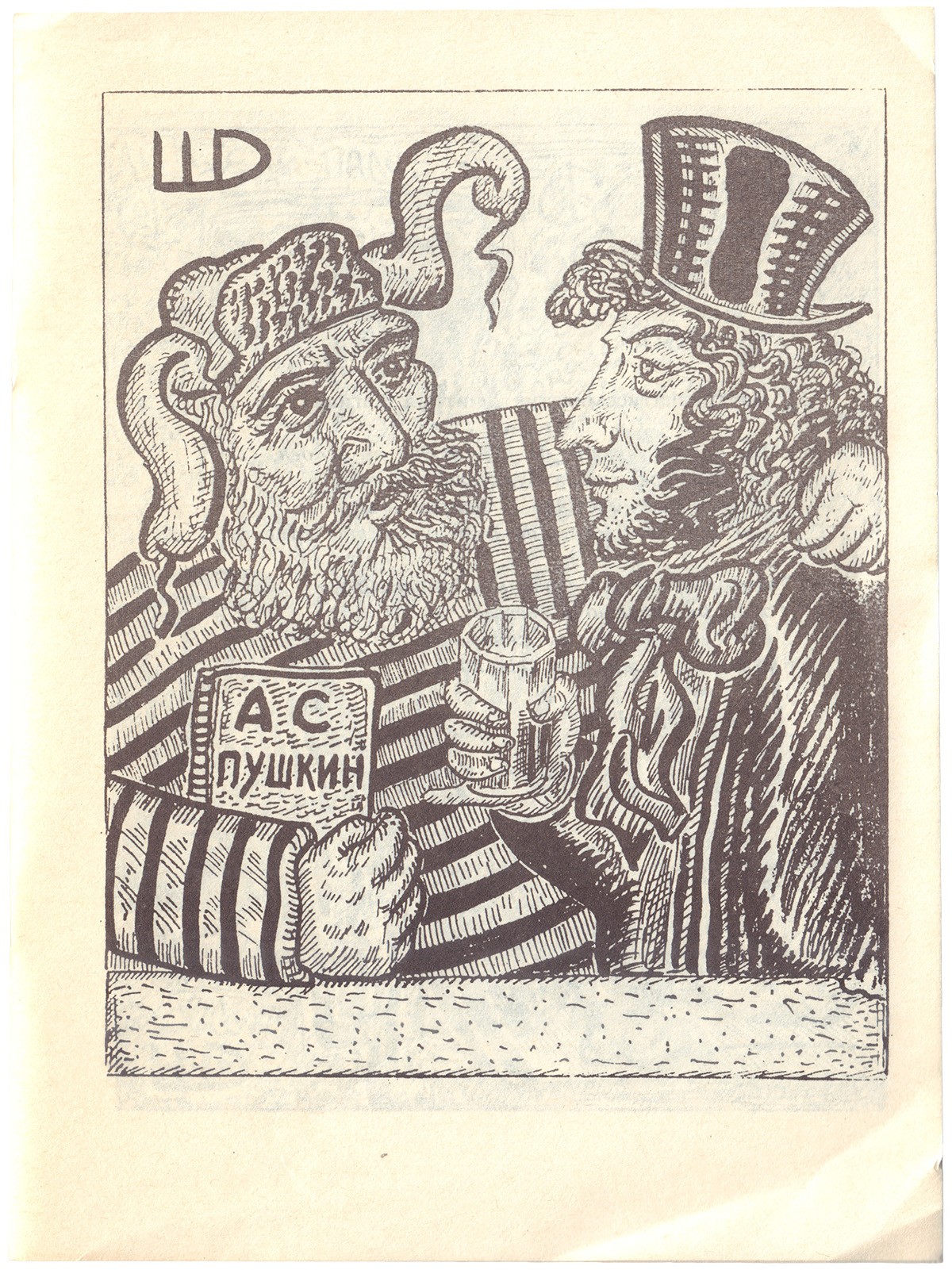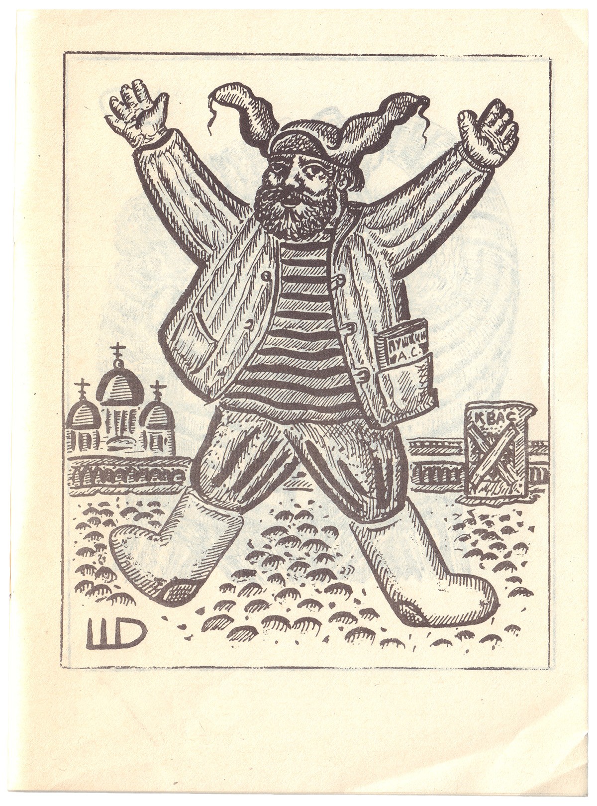 Дмитрий Владимирович Шагин (1957) — художник, график, поэт, прозаик. В 1984 году организовал группу художников, получившую название «Митьки». Один из организаторов книгоиздательства Mitkilibris, вместе с Александром Флоренским - галереи МИТЬКИ - ВХУТЕМАС. В 2006 г. основал музей творческого объединения МИТЬКИ. Автор музыкальных проектов «Митьковские песни», «Митьковские танцы», «Митьковский Питер», «Москва митьковская» и др. Из собрания художника.