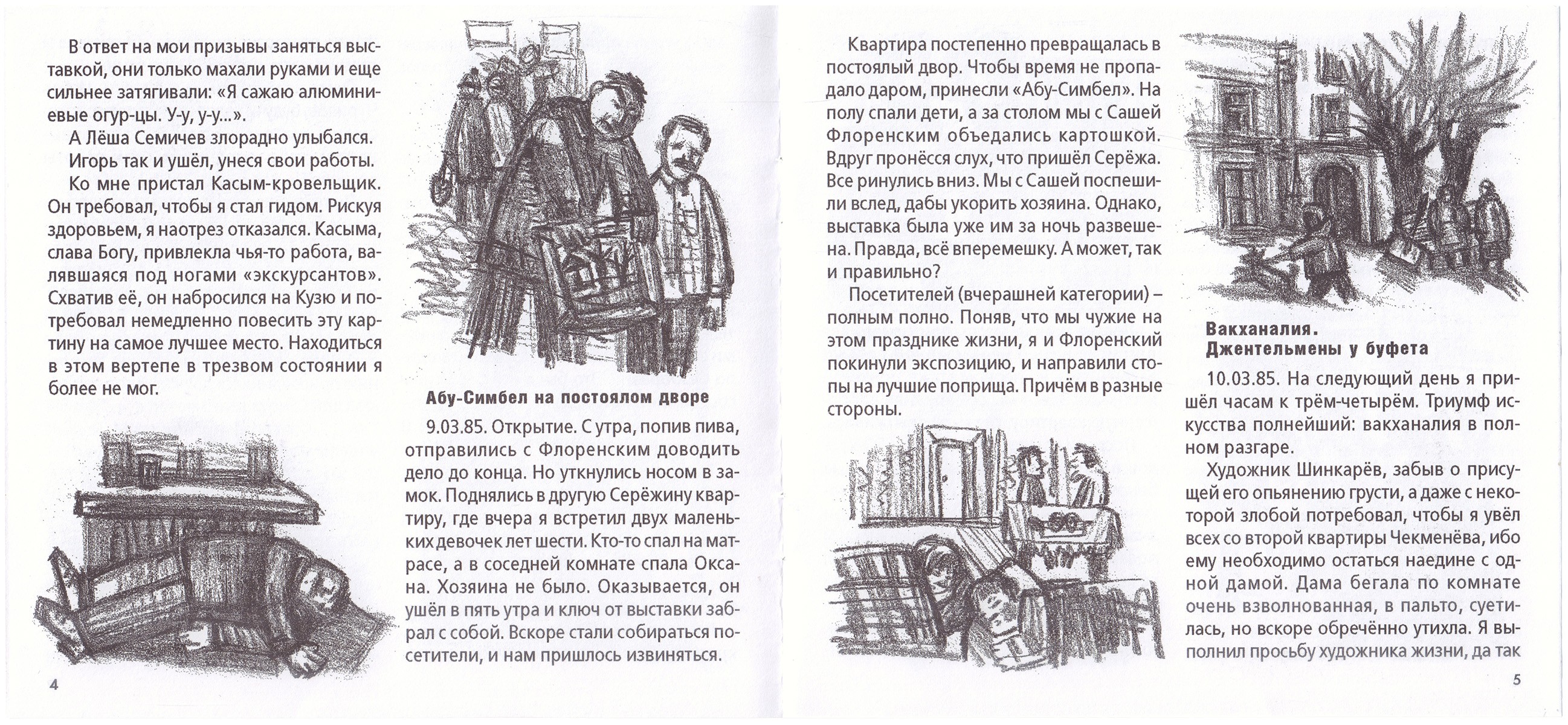 1. В иллюстрированной издательской обл. На обороте изд. обл. дарственная надпись автора, адресованная Михаилу Сапего: «Мише—/—благодаря тебе. / [подпись]». Ниже: «9 (12) А. Филиппов». 2. В иллюстрированной издательской обложке. «Среди соседей ползли слухи о том, что выставкой овладела одна из соседок, доведенная ею до белого каленья, заперлась там и порвала рисунки. <...> На следующее утро (14.03.85.) я стал организовывать эвакуацию выставки. Группа спасателей в составе пяти человек встретилась у ларька, что у Кокушкина. Во двор вошли тихо, только снег предательски поскрипывал под ногами. Дальнейшие действия проходили четко и оперативно, что обеспечило успех операции».